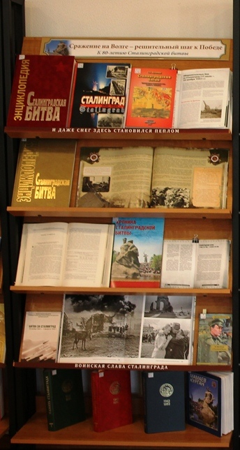 К 80-летию окончания Сталинградской битвы (2023) и в память о великом подвиге русского солдата подготовлена книжно-иллюстративная выставка «Сражение на Волге – решительный шаг к Победе». Видеообзор >>>