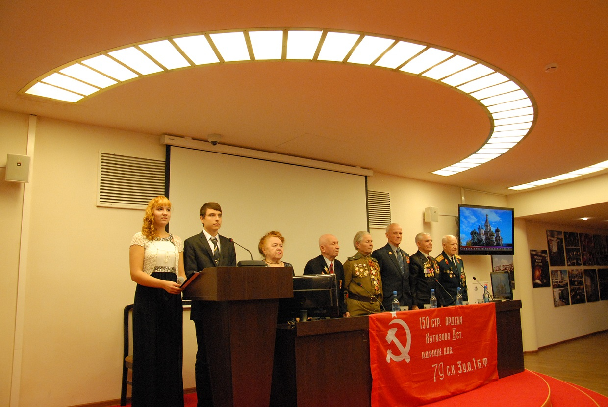Прозвучали вопросы о первых боевых и трудовых наградах, о боевых ранениях, о начале трудовой деятельности, которые создали атмосферу живого общения. В зале звучали песни о России, о военных и трудовых подвигах.