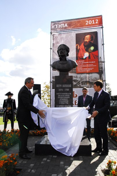 Памятник Петру Первому работы тульского скульптора А.И. Чернопятова был торжественно открыт под колокольный звон близлежащих к музею православных храмов и залпы ружейного салюта военного караула.
