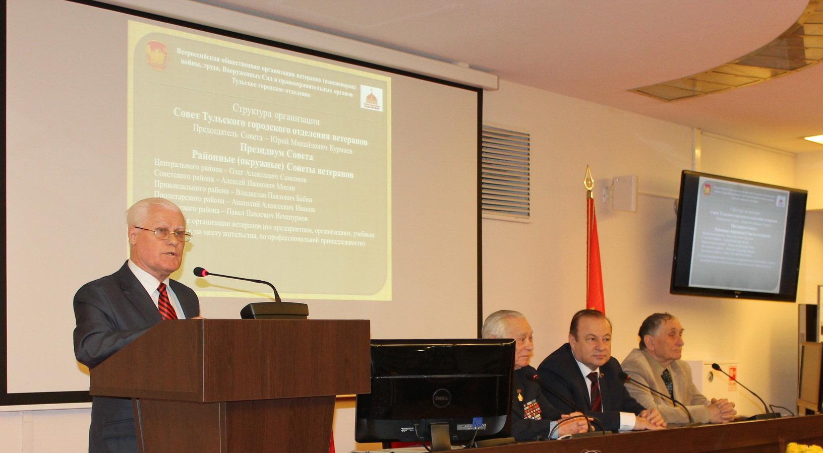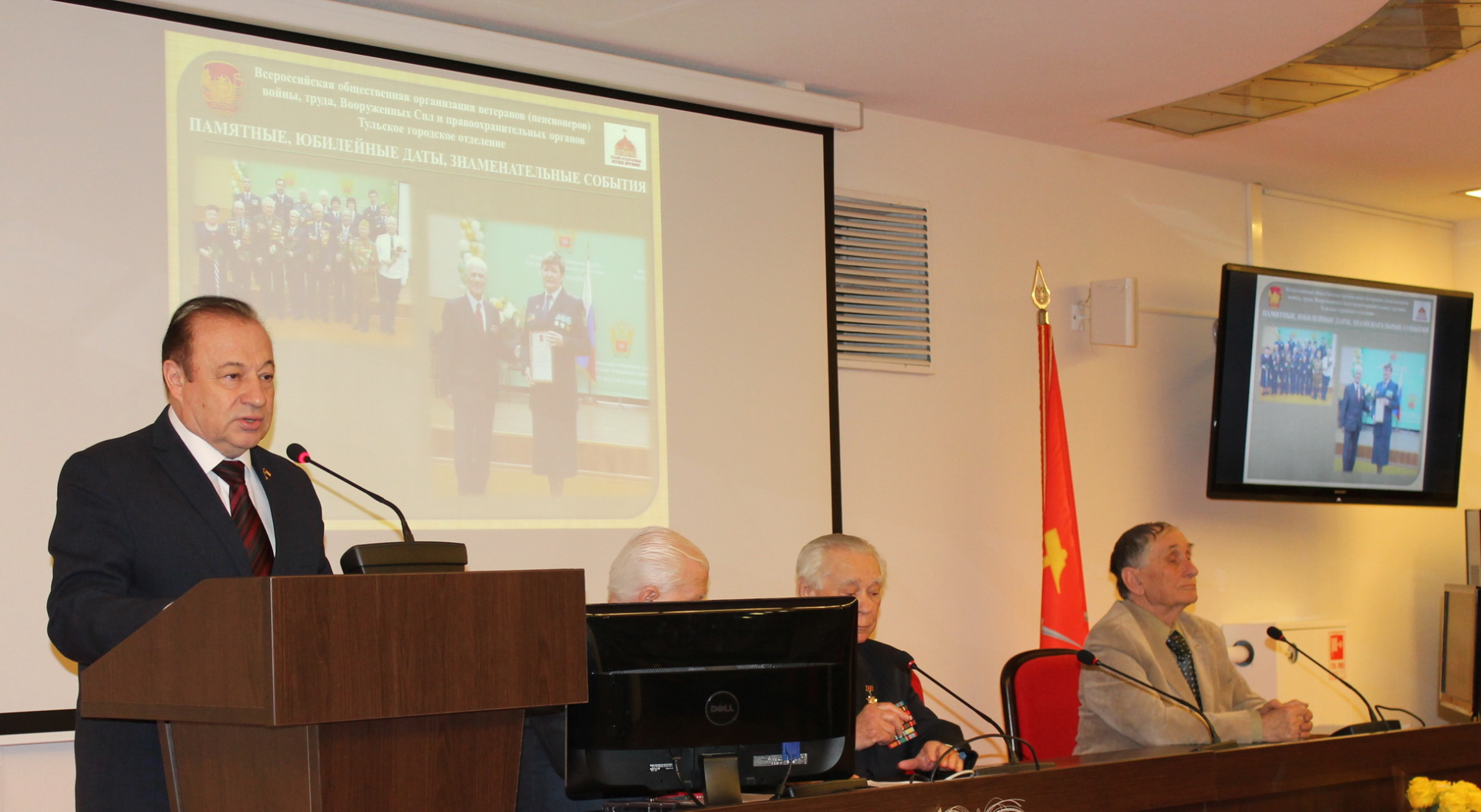 Сегодня в музее оружия прошло торжественное мероприятие, посвященное 30-летию Тульского городского отделения Тульского регионального отделения Всероссийской общественной организации ветеранов (пенсионеров) войны, труда, Вооруженных Сил и правоохранительных органов. Ветеранов тепло поздравили глава муниципального образования г. Тула Ю.И. Цкипури, директор Тульского музея оружия Н.И.Калугина, председатель регионального отделения ДОСААФ России Тульской области Ю.Г. Левченко, председатель Тульского областного Совета ветеранов войны, труда, Вооруженных Сил и правоохранительных органов Б.В. Соколов, председатель Тульского областного отделения Всероссийской общественной организации ветеранов «Боевое братство» В.Н.Миронов, кадеты. Сердечно благодарим председателя Тульского городского совета ветеранов Юрия Михайловича Курмаева и его соратников за постоянную помощь и поддержку в реализации государственной программы патриотического воспитания граждан Российской Федерации. От всей души желаем крепкого здоровья, благополучия и дальнейших успехов в благородном труде