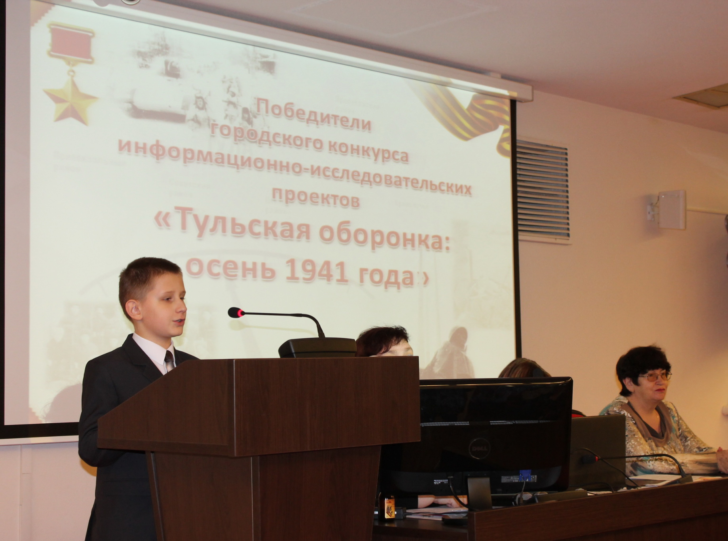 Лауреат конкурса «Славу Родине поем» Сабина Михайлова проникновенно и необычайно душевно исполнила «Балладу о матери». Победитель конкурса информационно-исследовательских проектов «Тульская оборонка: осень 1941 года» Александр Новиков познакомил со своим исследованием на тему «Роль оборонных предприятий в обороне Тулы осенью 1941 года». В завершении команды знатоков Ассоциации «Интеллект за будущее России» сразились на брэйн-ринге интеллектуальной игры «Улица любая оборонная». Первое место в упорной борьбе завоевала команда «Новое поколение» (центр образования № 34).