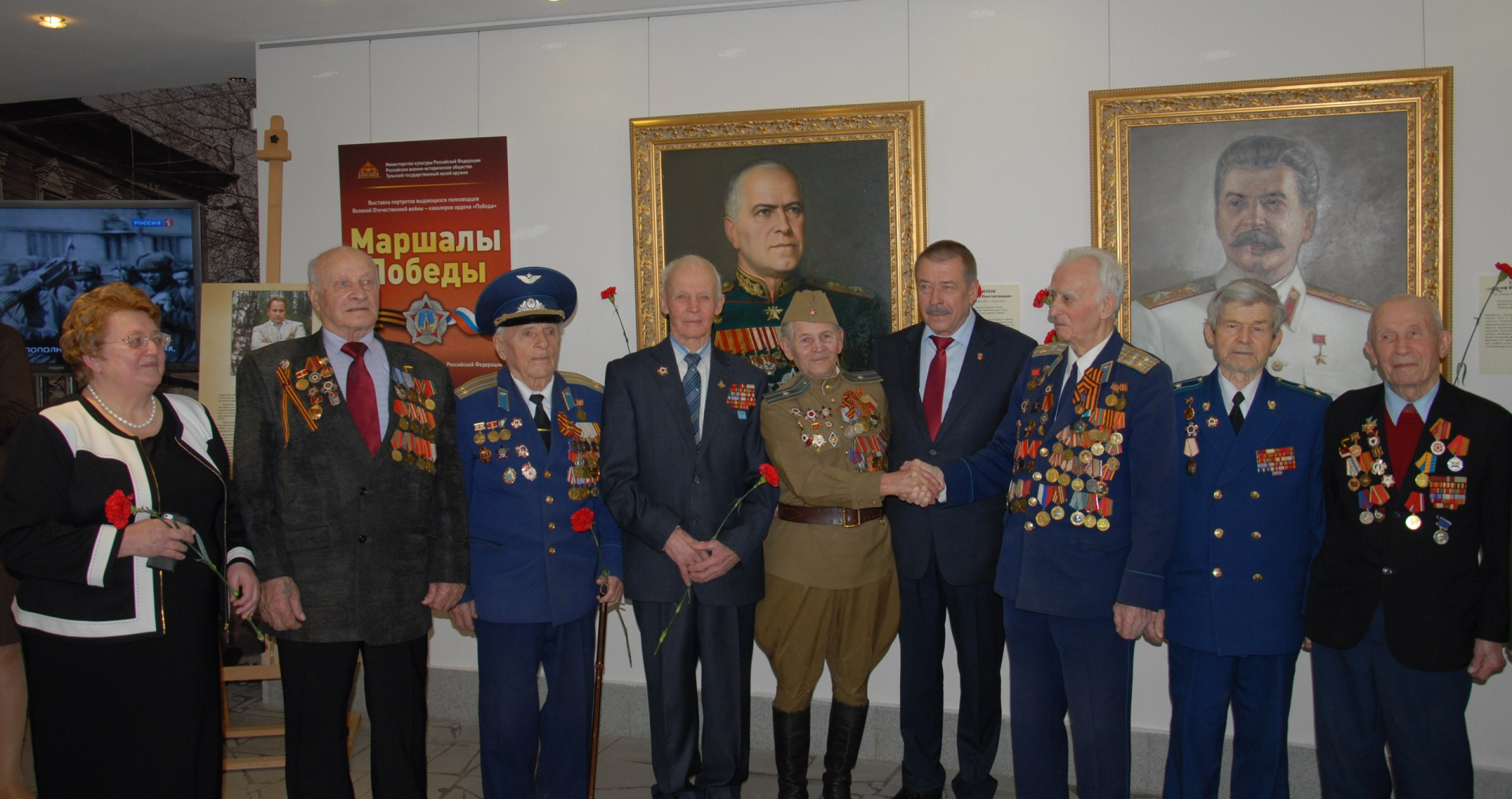 29 января в здании-«шлеме» открылась выставка картин Народного художника России В.В. Шилова «Маршалы Победы» - 11 подлинных живописных работ – портретов выдающихся полководцев, принесших победу в Великой Отечественной войне. На торжественной церемонии открытия присутствовали первый заместитель Губернатора – председатель правительства Тульской области Ю.М. Андрианов, министр культуры и туризма Тульской области, председатель Тульского регионального отделения Российского военно-исторического общества Т.В. Рыбкина, ветераны Великой Отечественной войны, руководители и специалисты учреждений культуры региона, воины-десантники, кадеты, студенты тульских вузов. В своем выступлении директор музея оружия Н.И. Калугина отметила значимость выставки и ценность этих новых музейных экспонатов в свете концепции музея, подчеркивающей роль воина-освободителя, конструктора, мастера-оружейника, и традиции доблести и мастерства.