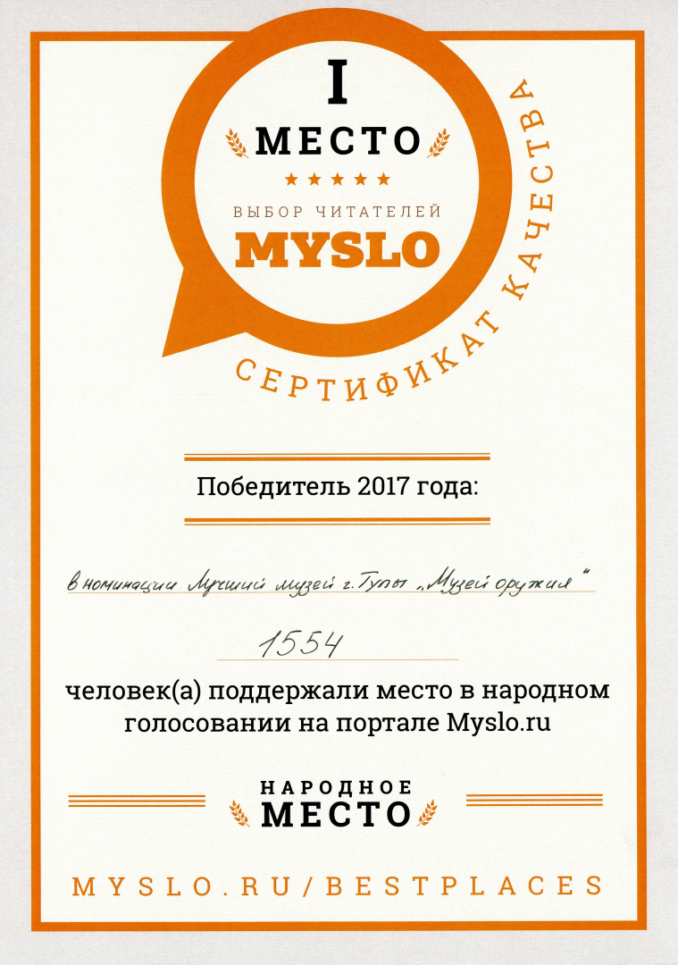 Музей оружия – «Лучший музей Тулы»! Выбор читателей информационного портала Myslo