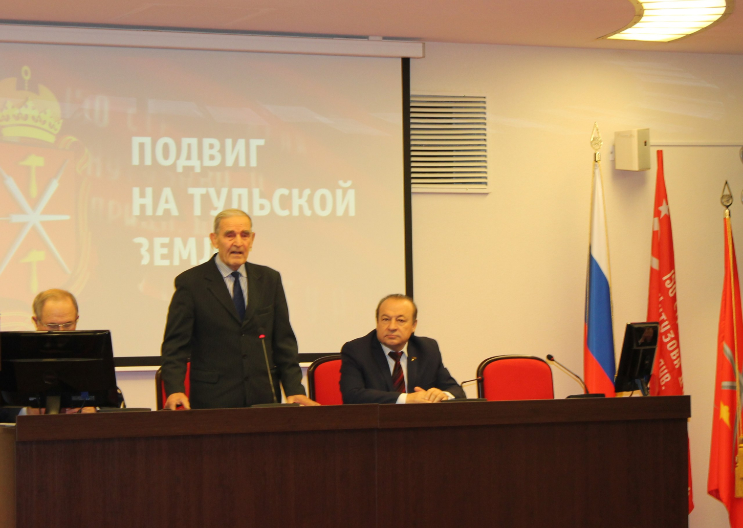К 75-летию героической обороны города Тулы от немецко-фашистских захватчиков в музее оружия состоялась презентация мультимедийной панорамы Тульской оборонительной операции в годы Великой Отечественной войны. Патриотическая акция была организована Фондом поддержки земляков «Тульский край» и Тульской региональной общественной организацией «Тульское землячество». В обсуждении приняли участие глава муниципального образования г. Тула Ю.И. Цкипури, председатель Совета «Тульского землячества» Е.М. Давыдов, исполнительный директор фонда «Тульский край» В.И. Ксенфонтов, сотрудники музея оружия, представители общественности, школьники, студенты, воспитанники Тульского военного суворовского училища. Видеолекция, разработанная авторским коллективом с исторической достоверностью на основе архивных материалов, дает подробное описание боев на территории Тульской и соседних областей в 1941-1942 гг. Создатели надеются, что эта мультимедийная панорама станет надежным помощником на уроках истории в школах и вузах