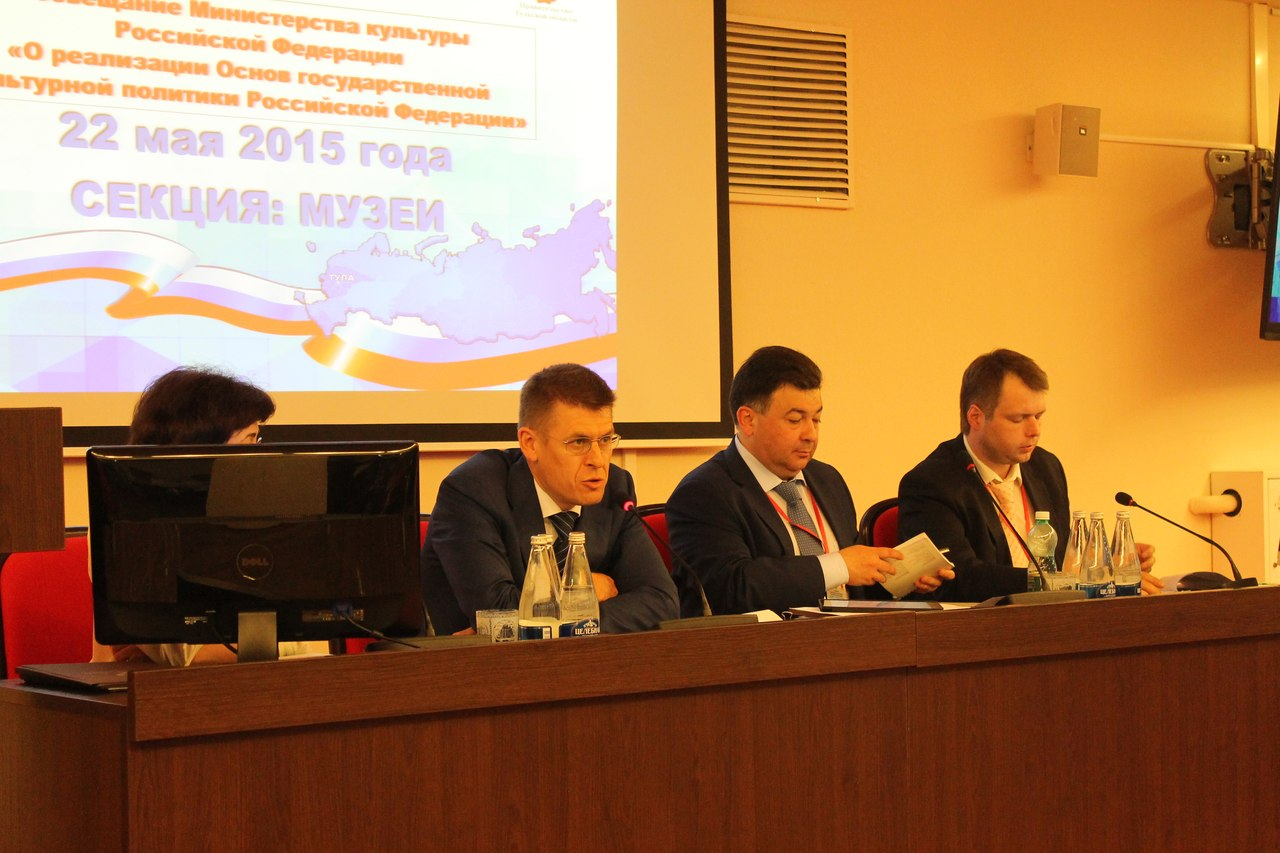 Сегодня Тульский музей оружия посетили руководители и представители федеральных музеев России – участники совещания Министерства культуры Российской Федерации «О реализации основ государственной культурной политики Российской Федерации». В ходе работы секции «Музеи», в которой приняли участие первый заместитель Министра культуры РФ В.В. Аристархов, директор департамента культурного наследия Министерства культуры РФ М.А. Брызгалов и представители федеральных музеев, были обсуждены актуальные вопросы развития музеев России, формирования и развития ФГИС «Государственный каталог Музейного фонда Российской Федерации», совершенствования кадровой политики в музейной сфере.