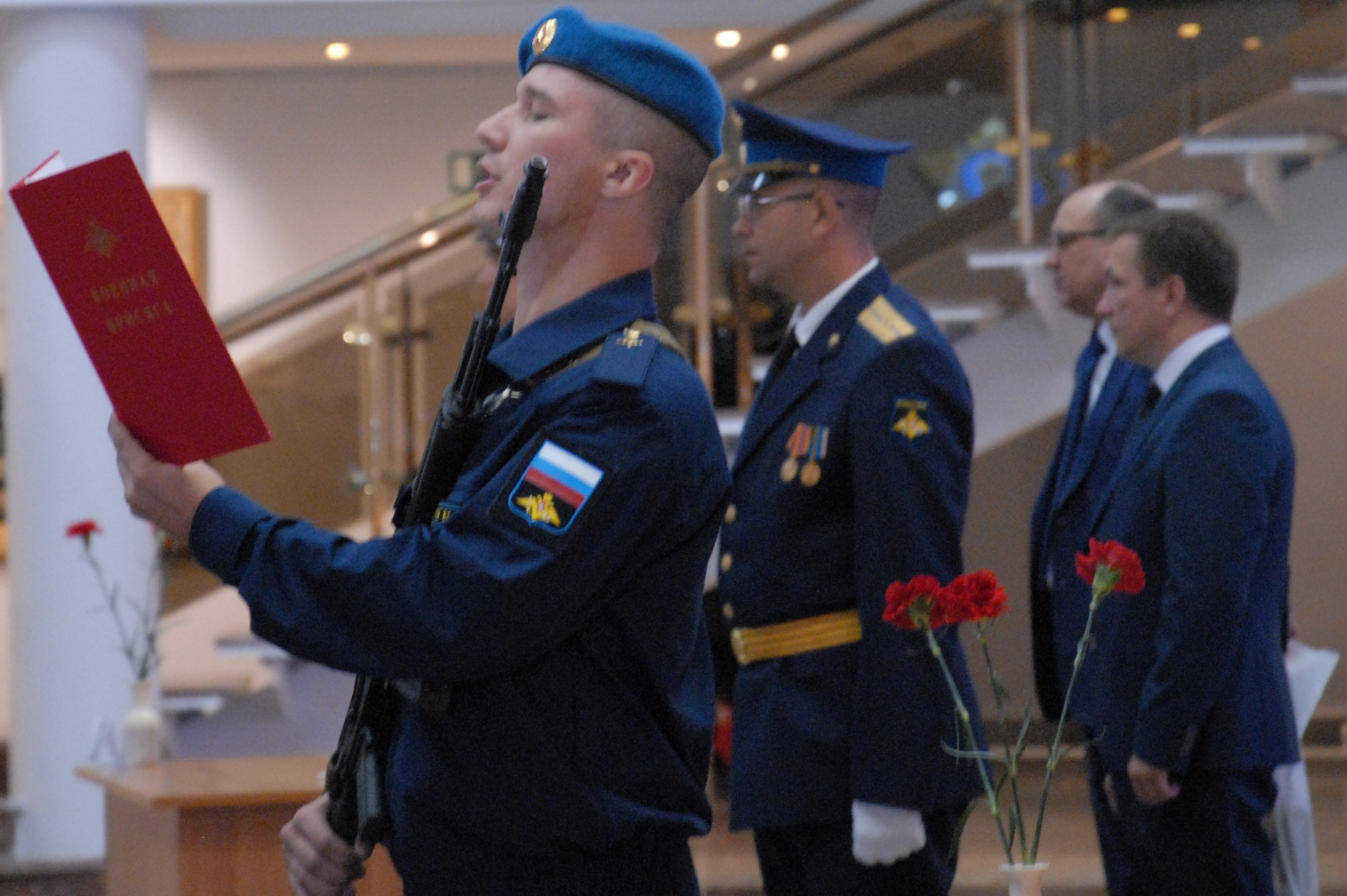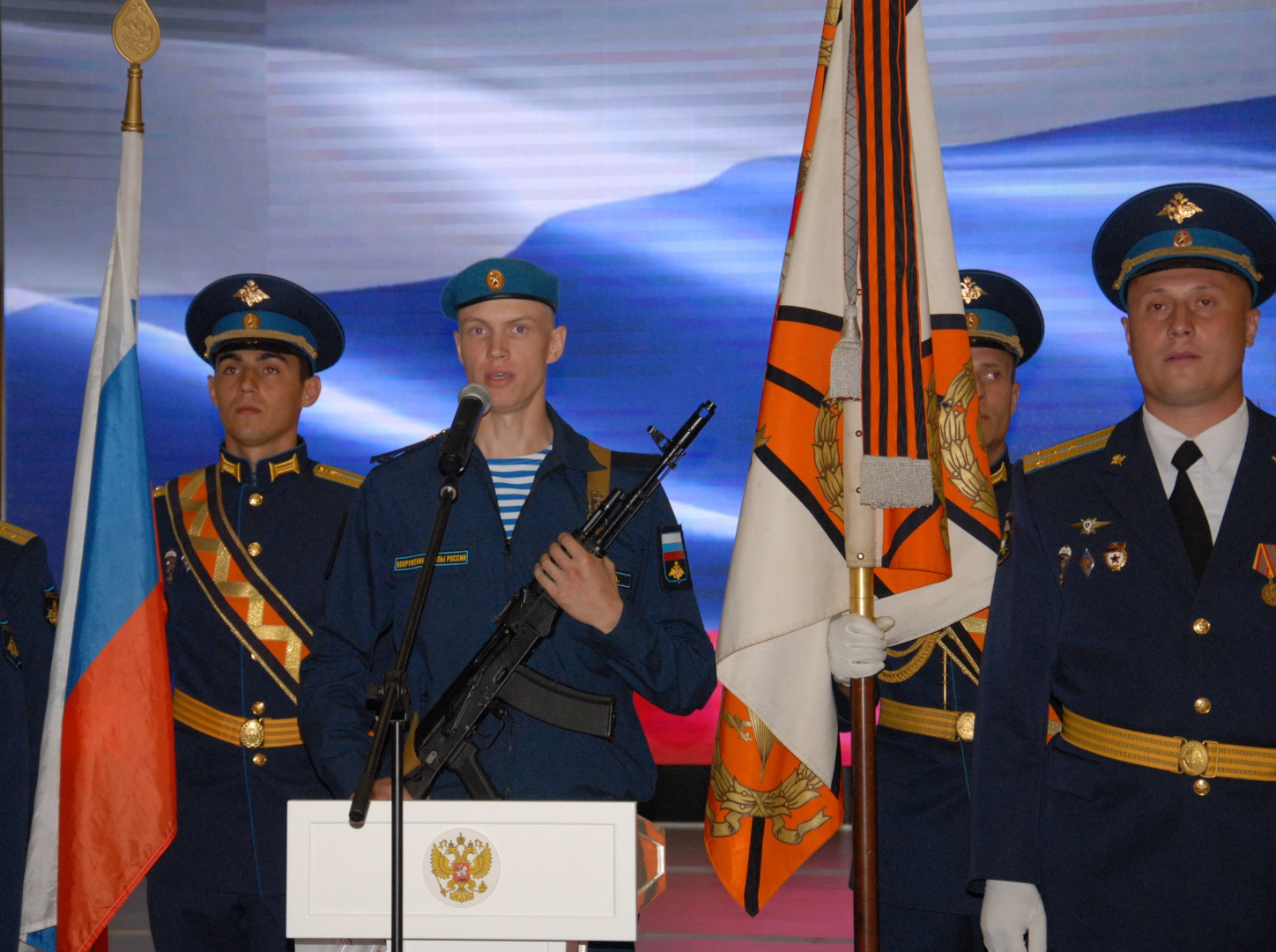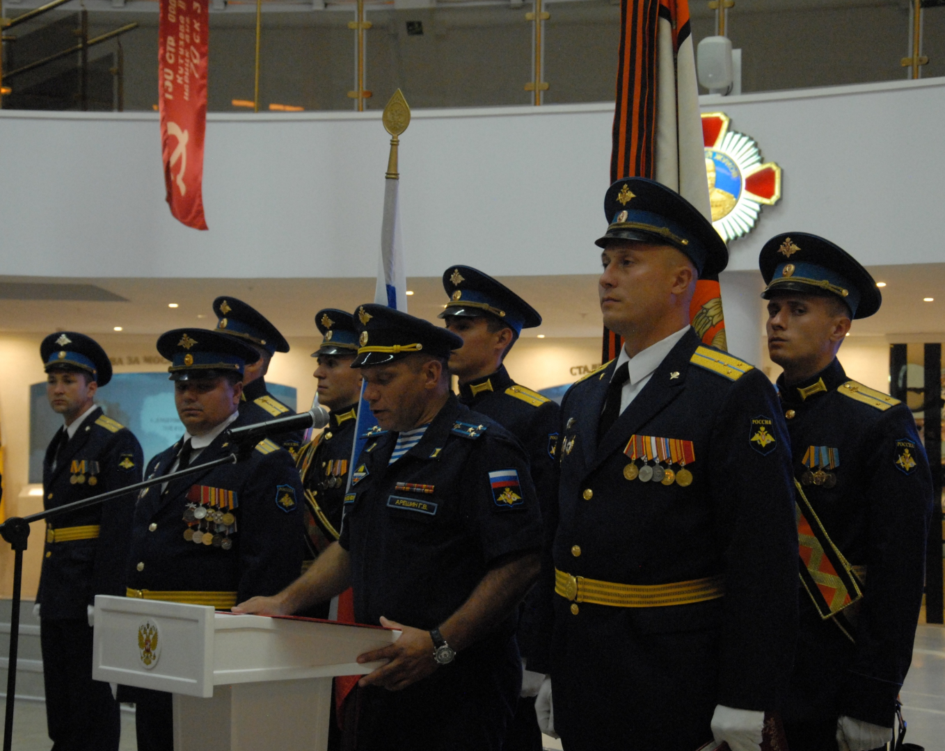 «Служу России!». Военная присяга личного состава научно-производственной роты 106-й дивизии ВДВ в музее оружия.