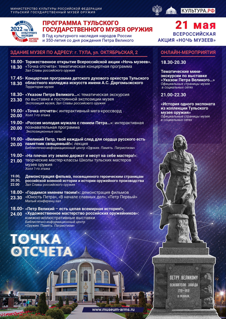 «Точка отсчета» в «Ночь музеев 2022» в Тульском музее оружия! 21 мая с 18.00 до 24.00 часов.