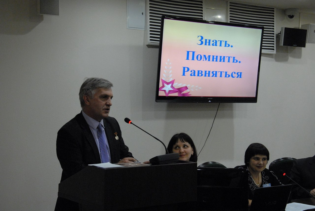 О генерале Ермакове Аркадии Николаевиче, командующем 50-й армией в первый месяц обороны Тулы, рассказали директор Мценского городского краеведческого музея Е.Г. Матвеева и председатель Тульского городского совета ветеранов Ю.М. Курмаев. Именно им музей оружия вручил комплекты наградных документов для увековечивания памяти героя. Особенно трогательным было сообщение кадетов Юридического колледжа о том, что в течение нескольких лет они вместе с ветеранами ухаживают за могилой генерала А.Н. Ермакова на Новодевичьем кладбище (г. Москва).