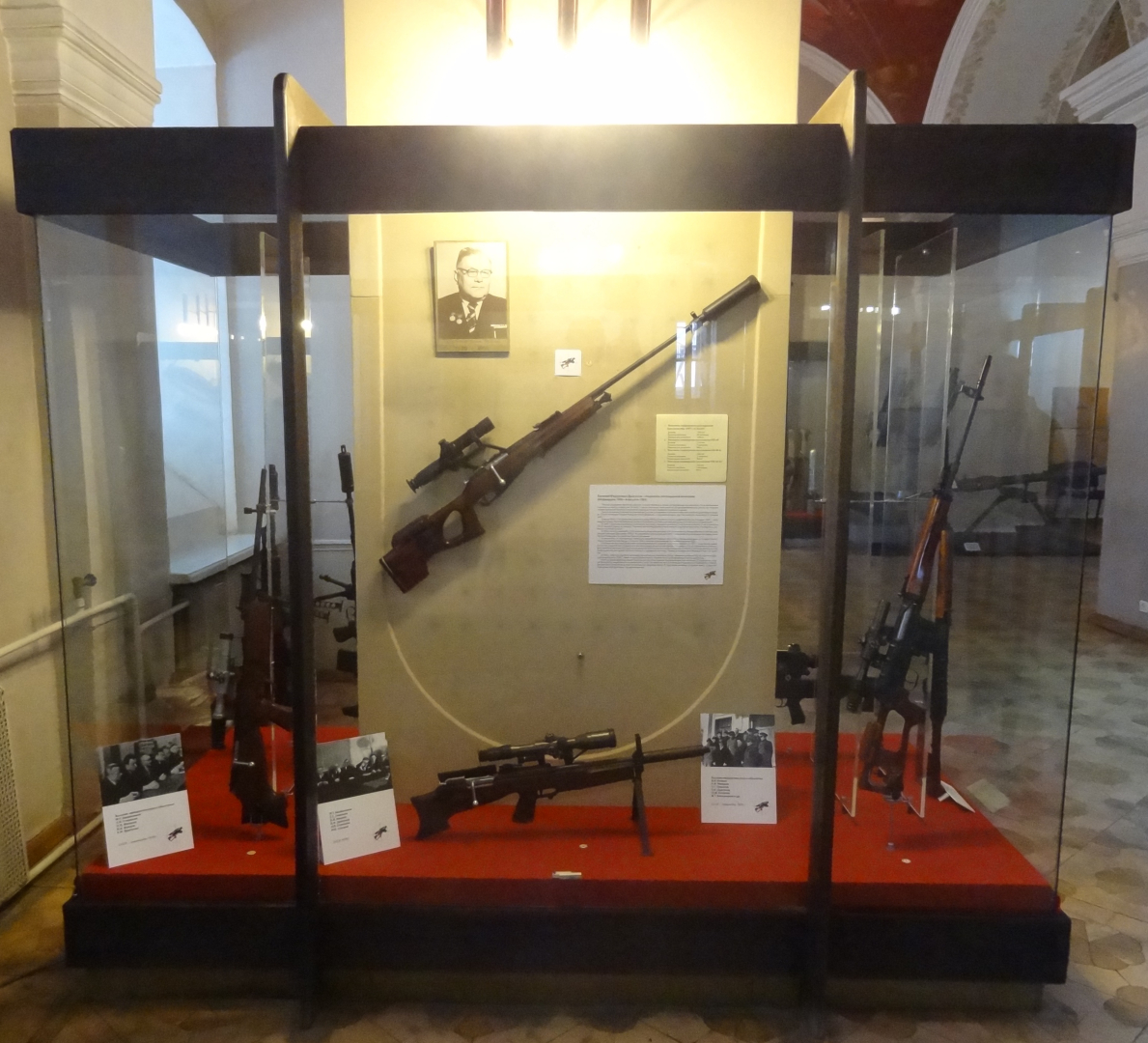 Имя конструктора Драгунова неразрывно связано с легендарной снайперской винтовкой СВД, которая была принята на вооружение в 1963 г. СВД является лучшей армейской винтовкой и до сих пор, вот уже более 50 лет, состоит на вооружении армии России. За разработку образца и внедрение его в производство Драгунов был удостоен Ленинской премии.