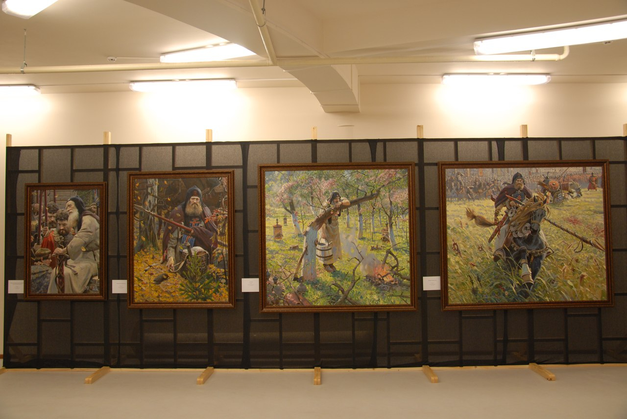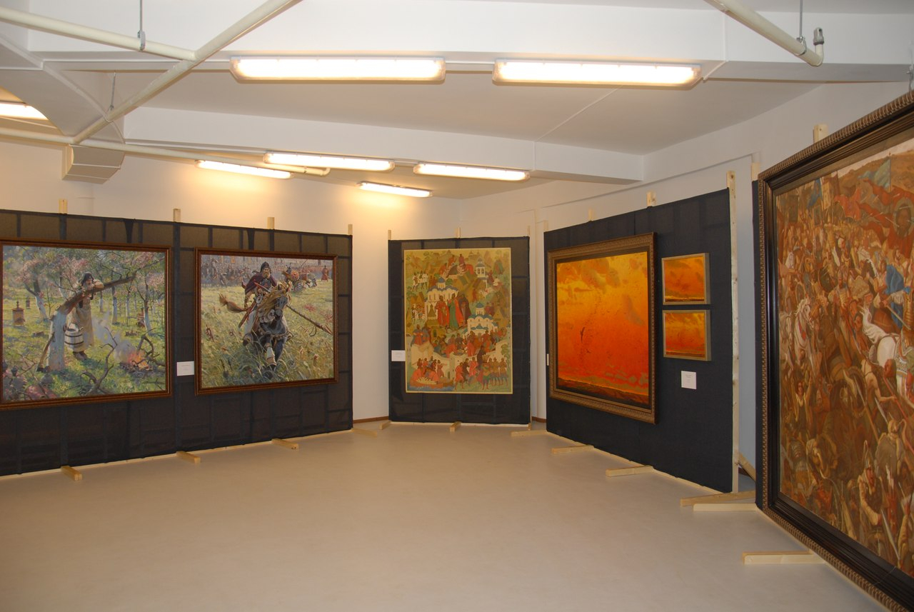 Живописные полотна, представленные на выставке, - это часть прошлого и будущего музея Куликовской битвы. Работы 80-х годов XX века были созданы для музея, открывшегося на Куликовом поле в храме-памятнике Сергия Радонежского к 600-летию сражения. Это портреты Владимира Серпуховского и Дмитрия Донского кисти В.П. Криворучко, русское и ордынское войско в соавторстве С.Н. Репина, В.В. Сухова, И.Г. Уралова, Н.П. Фомина, живописные панно Н.П. Фомина и Н.П. Богачевой о строительстве Московского Кремля и сборе ратей Дмитрия Донского накануне битвы, созданные в стилистике летописных миниатюр. Полотна демонстрировались на Куликовом поле до 2010 года и после многолетнего перерыва вновь предстают перед зрителем.