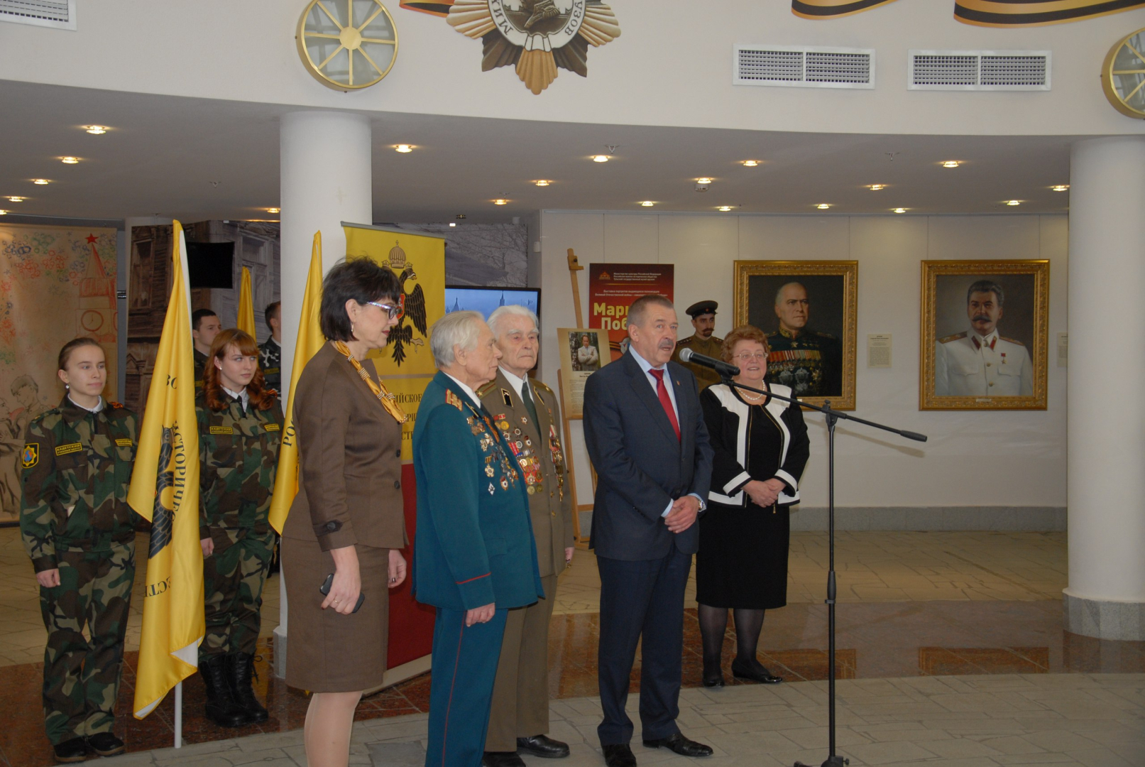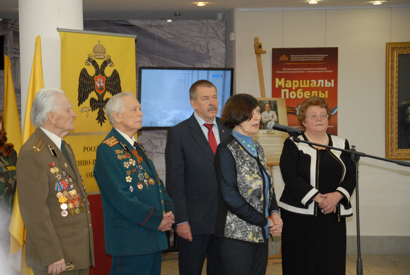 11 подлинных живописных работ – портретов выдающихся полководцев, принесших победу в Великой Отечественной войне. На торжественной церемонии открытия присутствовали первый заместитель Губернатора – председатель правительства Тульской области Ю.М. Андрианов, министр культуры и туризма Тульской области, председатель Тульского регионального отделения Российского военно-исторического общества Т.В. Рыбкина, ветераны Великой Отечественной войны, руководители и специалисты учреждений культуры региона, воины-десантники, кадеты, студенты тульских вузов. В своем выступлении директор музея оружия Н.И. Калугина отметила значимость выставки и ценность этих новых музейных экспонатов в свете концепции музея, подчеркивающей роль воина-освободителя, конструктора, мастера-оружейника, и традиции доблести и мастерства.