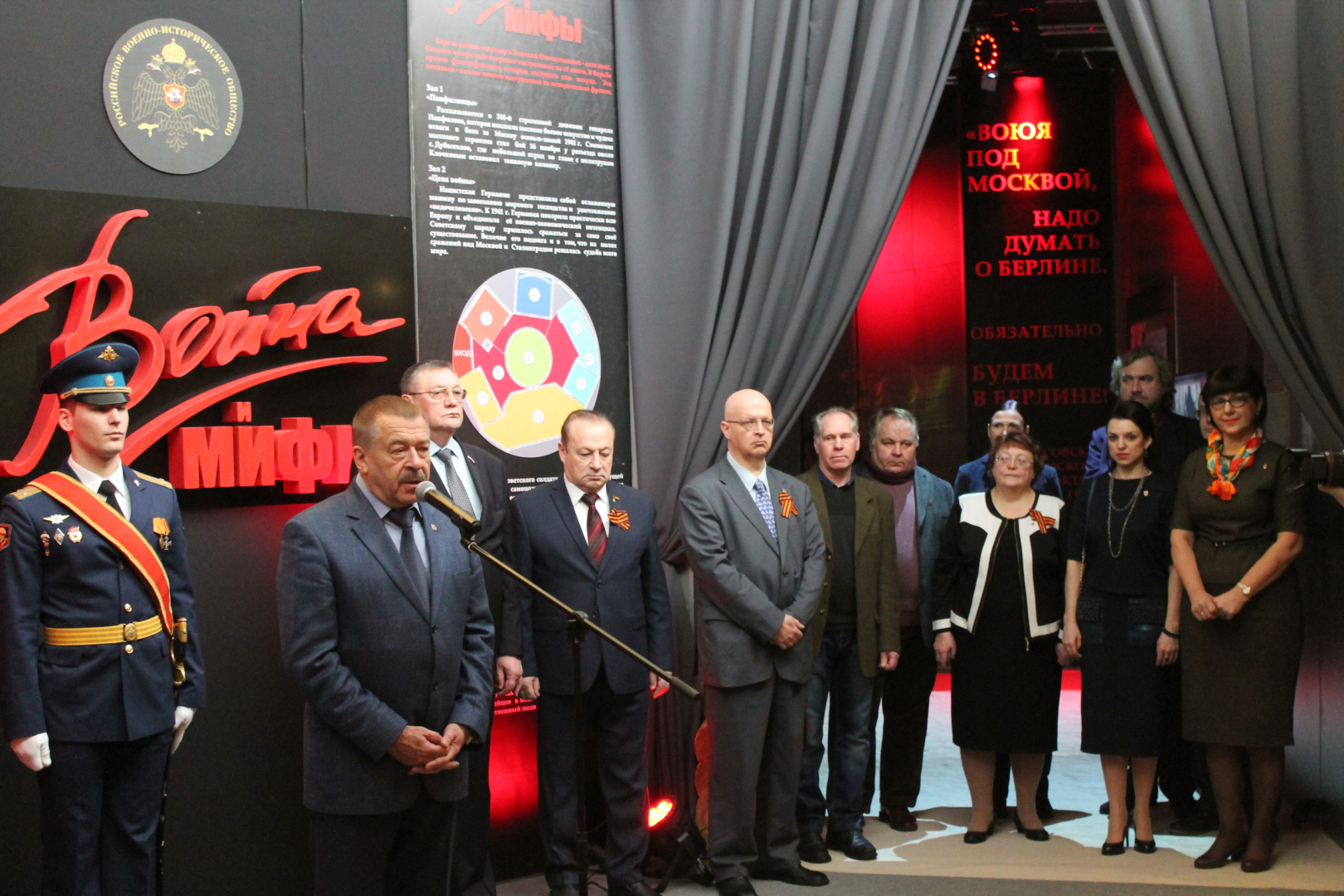 Директор музея оружия Н.И. Калугина в своем выступлении поблагодарила Министра культуры РФ, председателя Российского военно-исторического общества В.Р. Мединского за решение экспонировать уникальную выставку «Война и мифы» в городе-герое Туле после успешного старта в Москве.