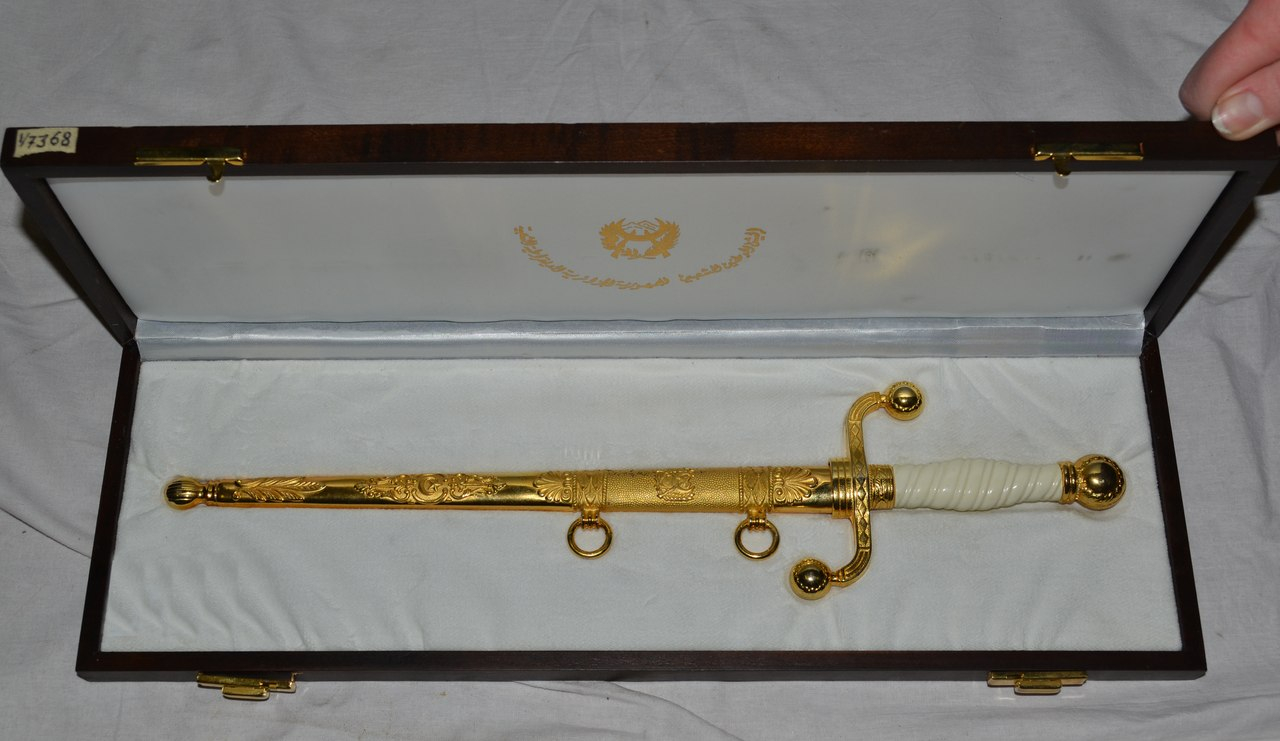На выставке представлено 96 предметов. Это кортики, сабли, шпаги, пистолеты, охотничьи ружья, принадлежавшие видным политическим, военным и общественным деятелям ХХ века; маршалам Советского Союза Ворошилову, Малиновскому, Ахромееву, генеральному секретарю ЦК КПСС Брежневу, писателю Эренбургу и многим другим. Некоторые экспонаты являются подарками, преподнесенными официальным лицам нашей страны Раулем Кастро, Ким Чен Иром, а также представителями вооруженных сил Венгрии, Румынии, Югославии, Франции, Саудовской Аравии, Алжира.