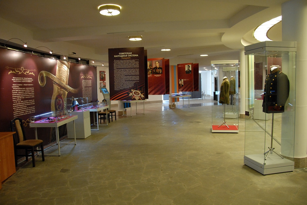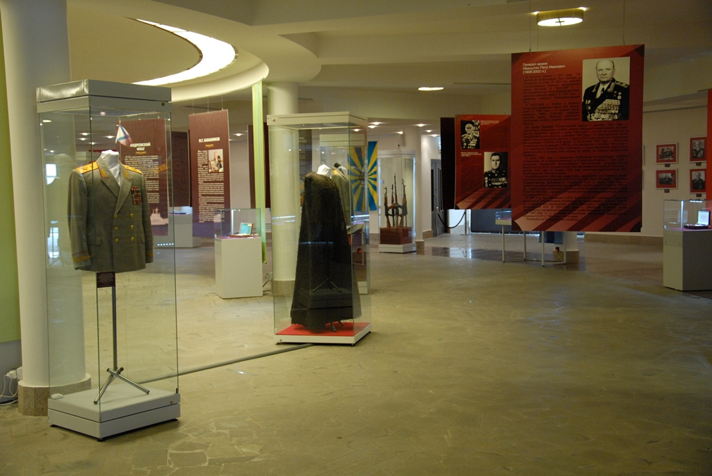 Особое место на выставке занимают предметы личного обмундирования известных советских военачальников, боевые и почетные знамена Красной Армии времен Гражданской и Великой Отечественной войн.