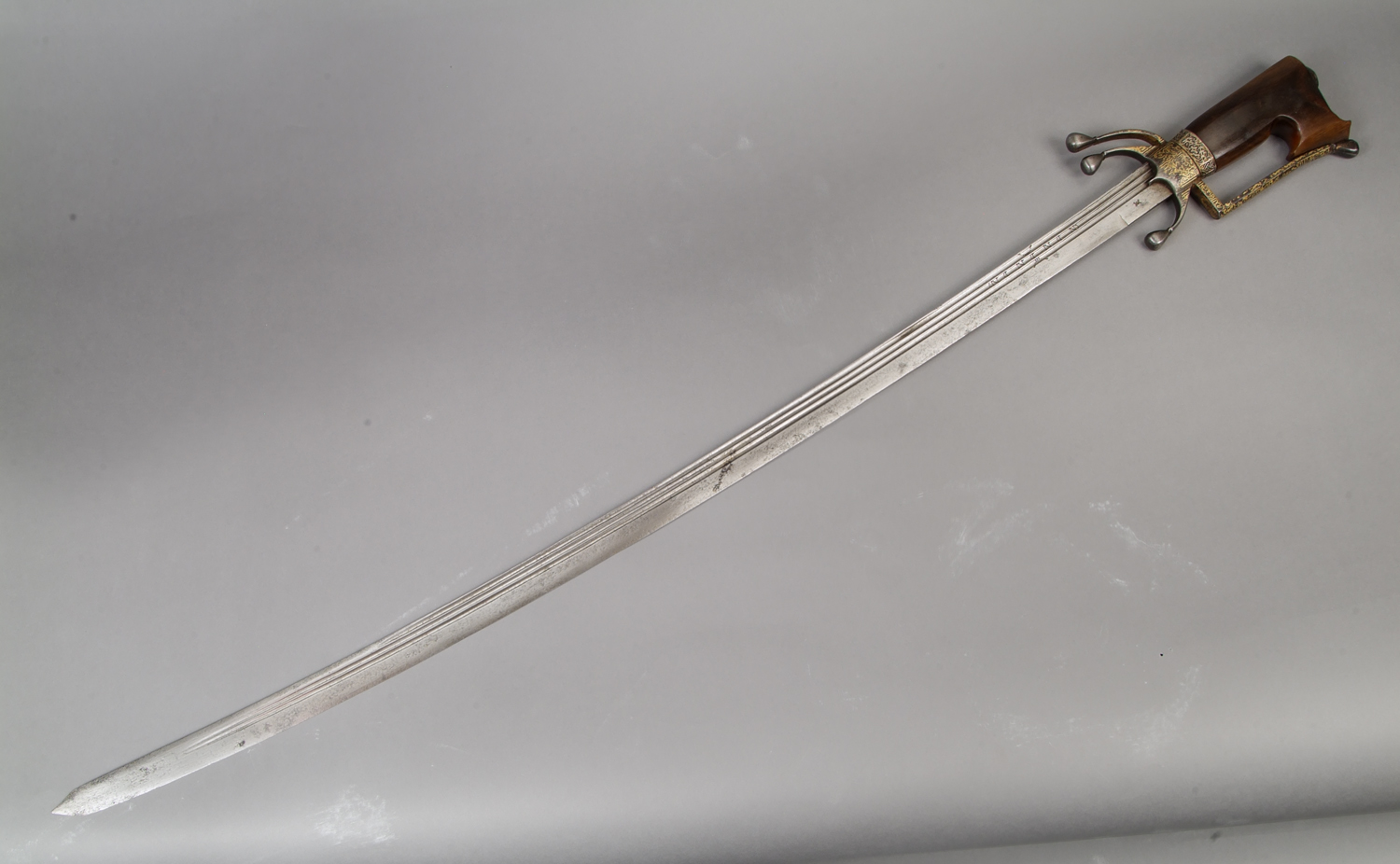 На выставке «Оружие Востока XVII-XIX веков» представлена сабля нимча, изготовленная в Марокко в XIX веке. Слово «нимча» значило уменьшенный и облегченный вариант длинноклинкового оружия («ним» - половинка, «ча» - уменьшительный суффикс).