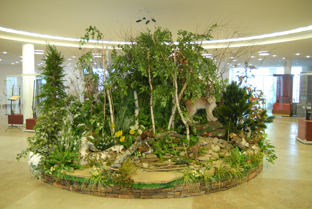 В Год охраны окружающей среды выставка «Охотничье оружие: взгляд сквозь прицел истории», что расположена на третьем этаже здания-шлема, приобретает жизнеутверждающее звучание. В центре зала создана натуралистическая экспозиция, отражающая красоту и неповторимость русской природы, нуждающейся в бережном отношении и защите. Теперь выставка получает еще одно название «Охотничье оружие как музейный предмет: природа торжествует!».