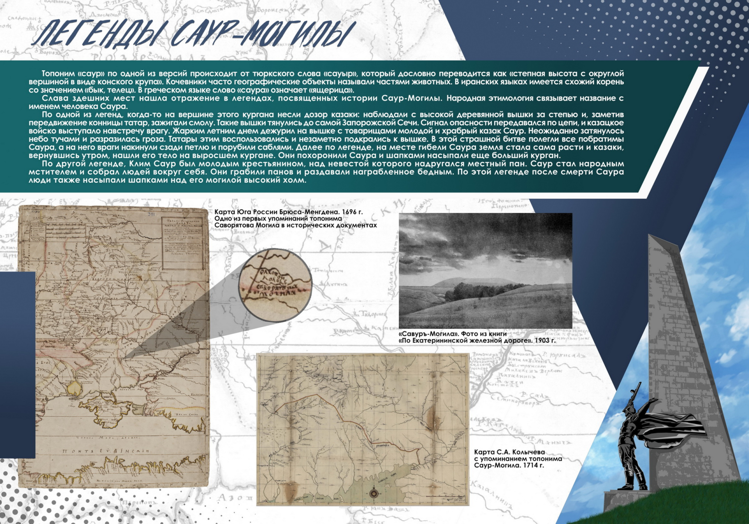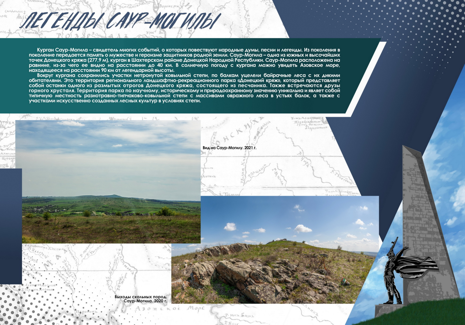 Курган Саур-Могила является максимальной географической высотой Донбасса, владение которой позволяет контролировать весь регион. По этой причине в разные времена курган оказывался в эпицентре ожесточенной борьбы между пришлыми завоевателями и защитниками родной земли. Драматичные события, происходившие на этой территории, отразились в народных песнях и легендах, стали частью генетической памяти жителей юга России.