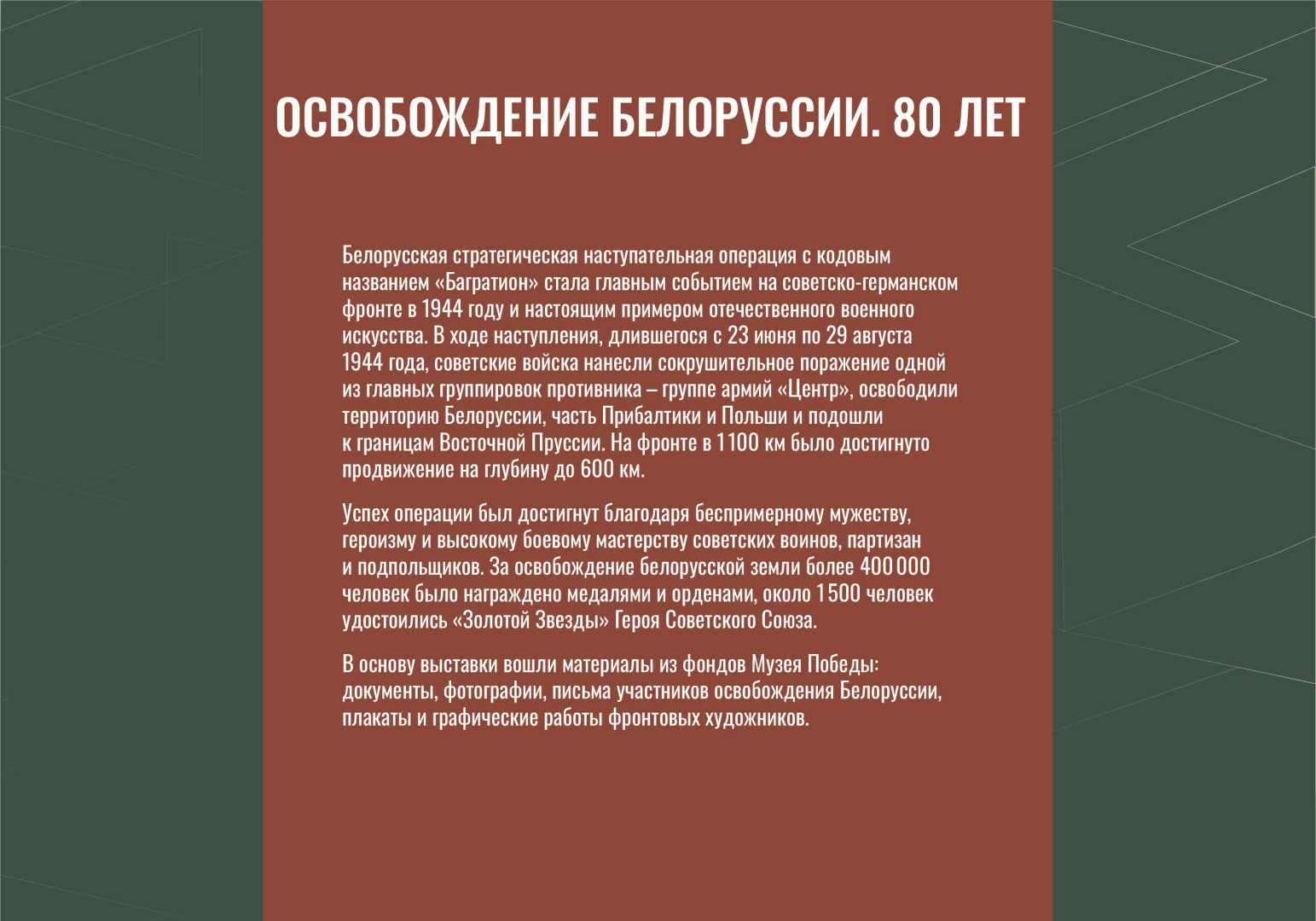 Проект посвящен 80-летию освобождения Беларуси от немецко-фашистских оккупантов в ходе стратегической наступательной операции «Багратион», проводившейся советским командованием с 23 июня по 29 августа 1944 года.