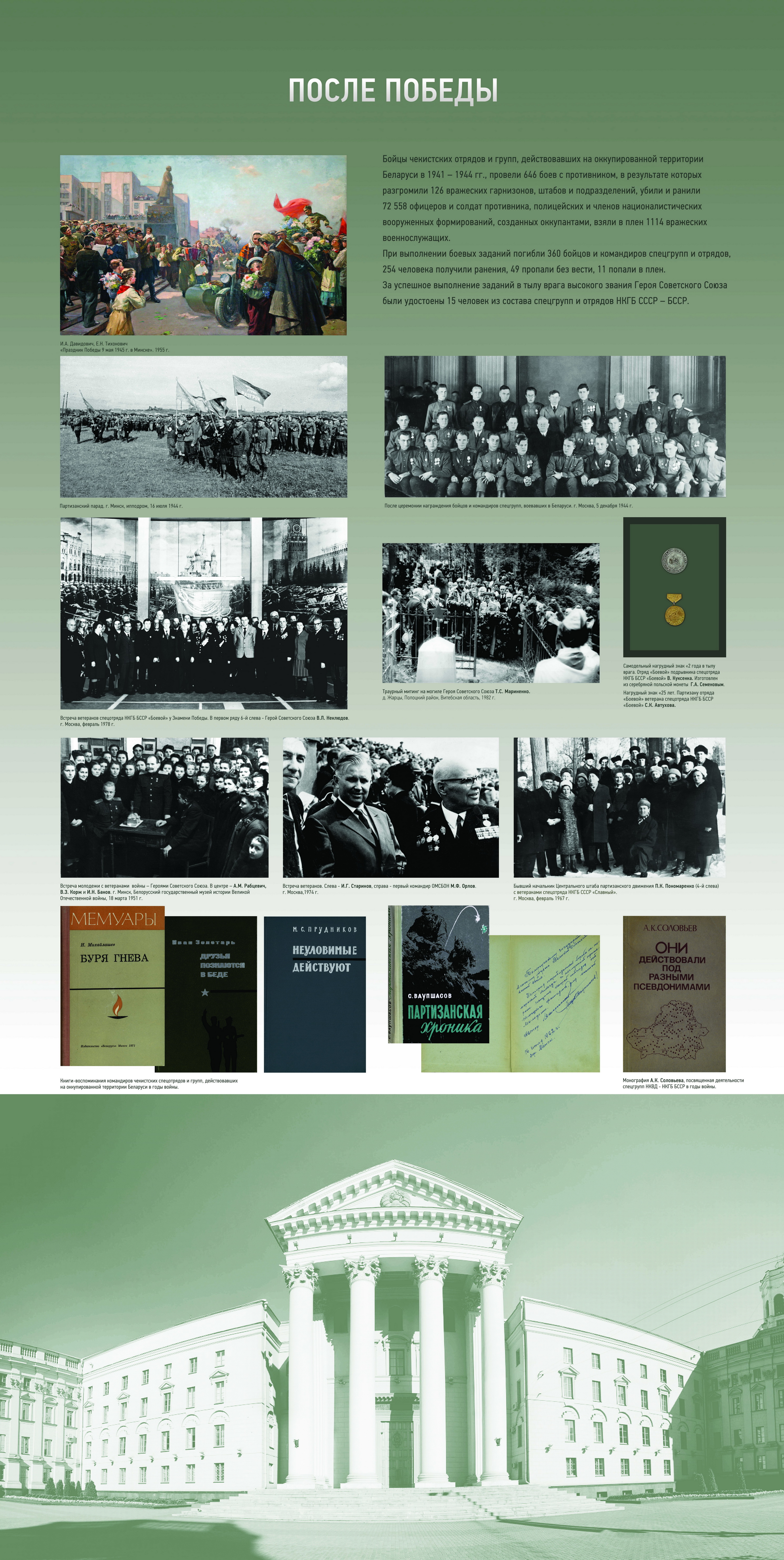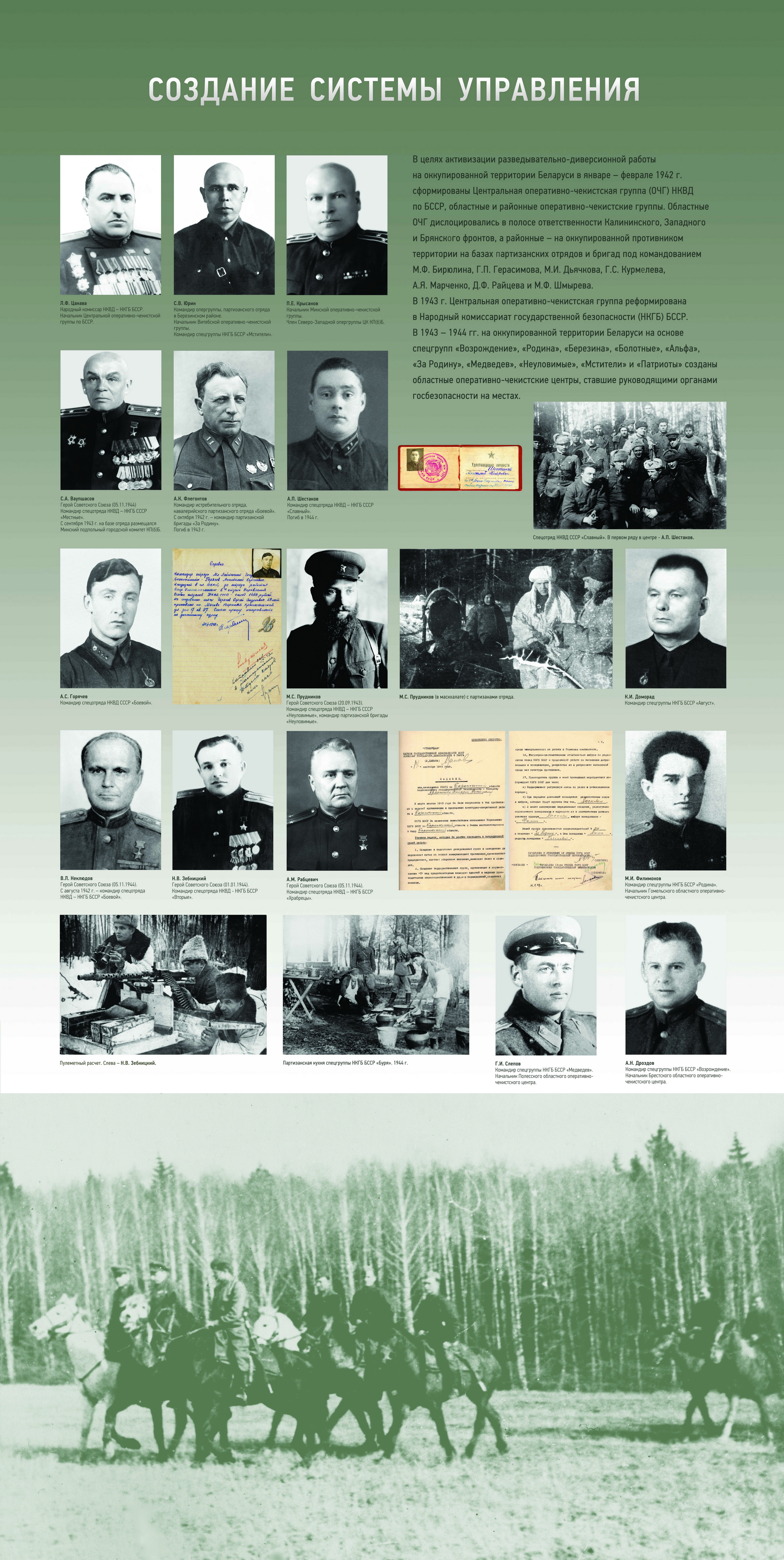 Выставочный проект приурочен к 100-летию учреждения органов государственной безопасности Беларуси и посвящен кадровым сотрудникам силовых структур и гражданским лицам, которые в составе разведывательно-диверсионных отрядов принимали участие в партизанском движении на территории оккупированной Беларуси.