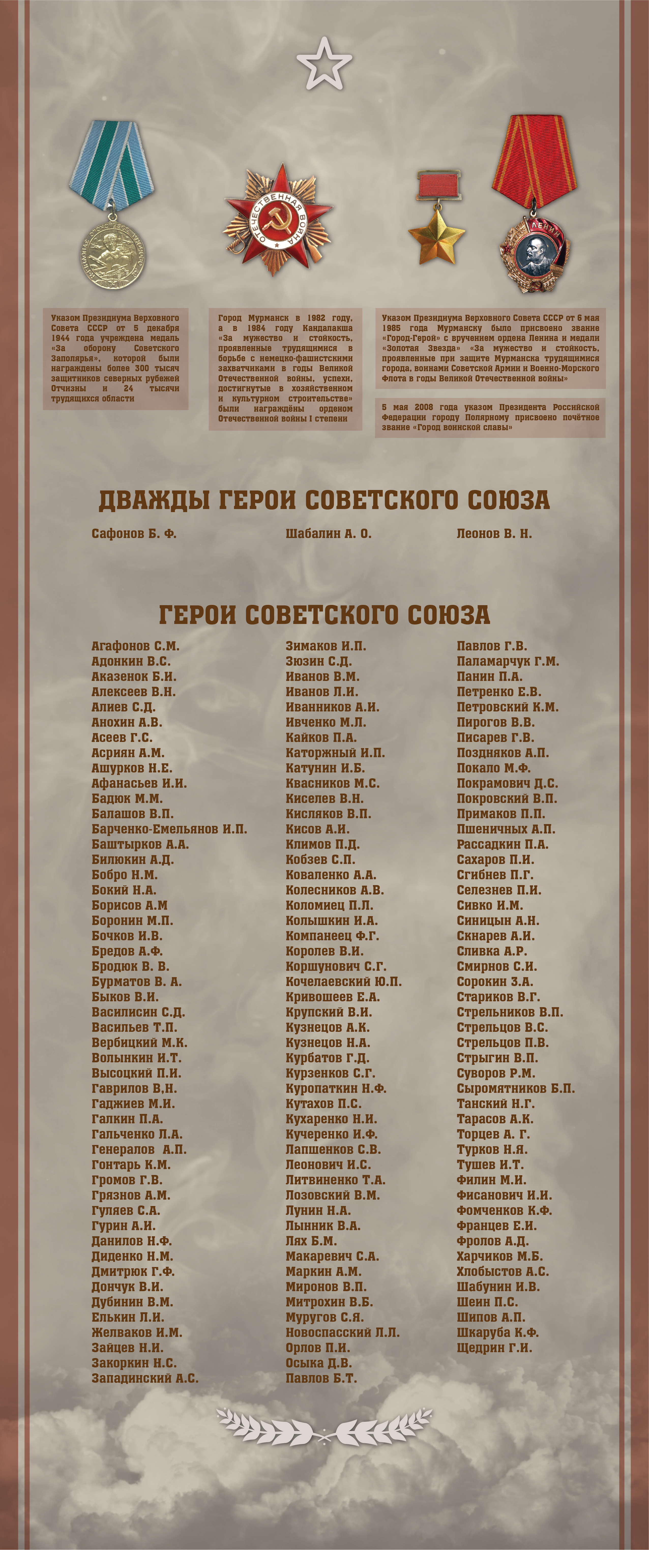 5 декабря 1944 года Указом Президиума Верховного Совета СССР была учреждена медаль «За оборону Советского Заполярья», которой были награждены более 350 000 фронтовиков и тружеников тыла. В 1985 году Мурманску было присвоено звание «Город-герой».