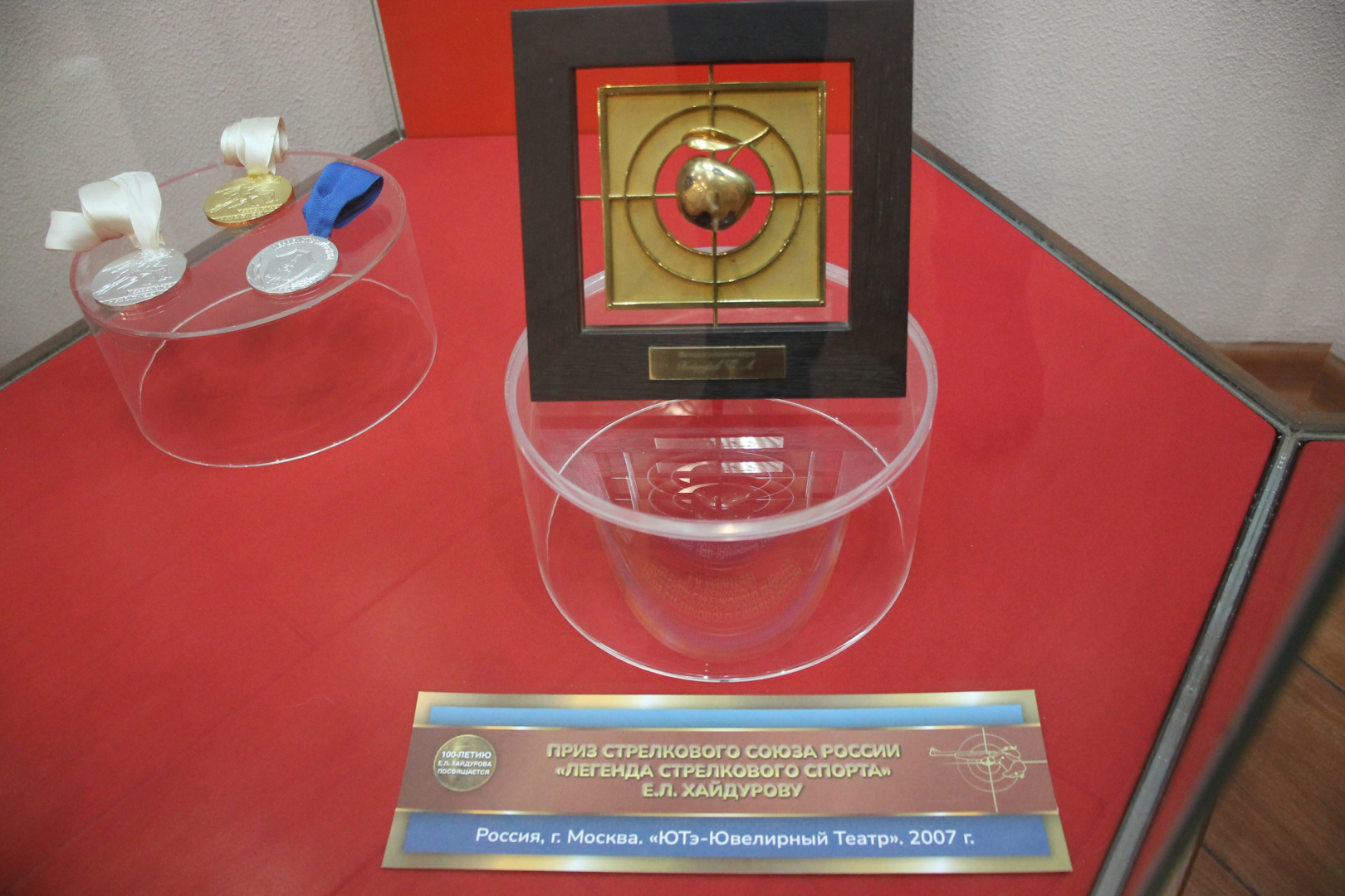 Среди экспонатов - уникальные предметы, предоставленные дочерью конструктора, Ольгой Ефимовной Хайдуровой, и ветеранами стрелкового спорта, а также авторские патенты, свидетельства и личные награды знаменитого оружейника, почетного мастера спорта СССР, заслуженного тренера СССР, неоднократного победителя и призера крупнейших соревнований по стрельбе.