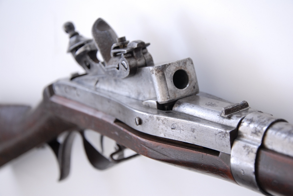 На выставке новых поступлений экспонируется ударно-кремневая винтовка американского оружейника Джона Хэнкока Холла, которая стала первой в мире казнозарядной моделью стрелкового оружия, принятой на вооружение регулярных войск.