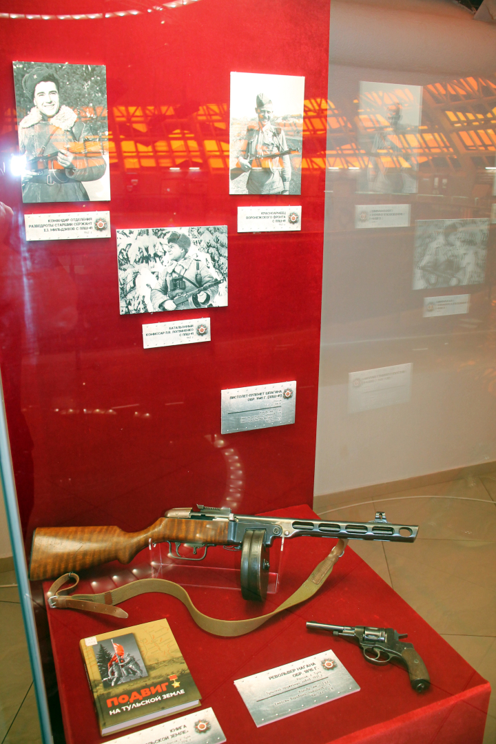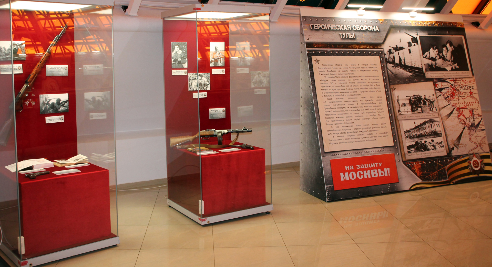 Особое внимание на выставке уделено боевым подвигам туляков при защите родного города и столицы, а также их вкладу в разгром нацистской Германии.
