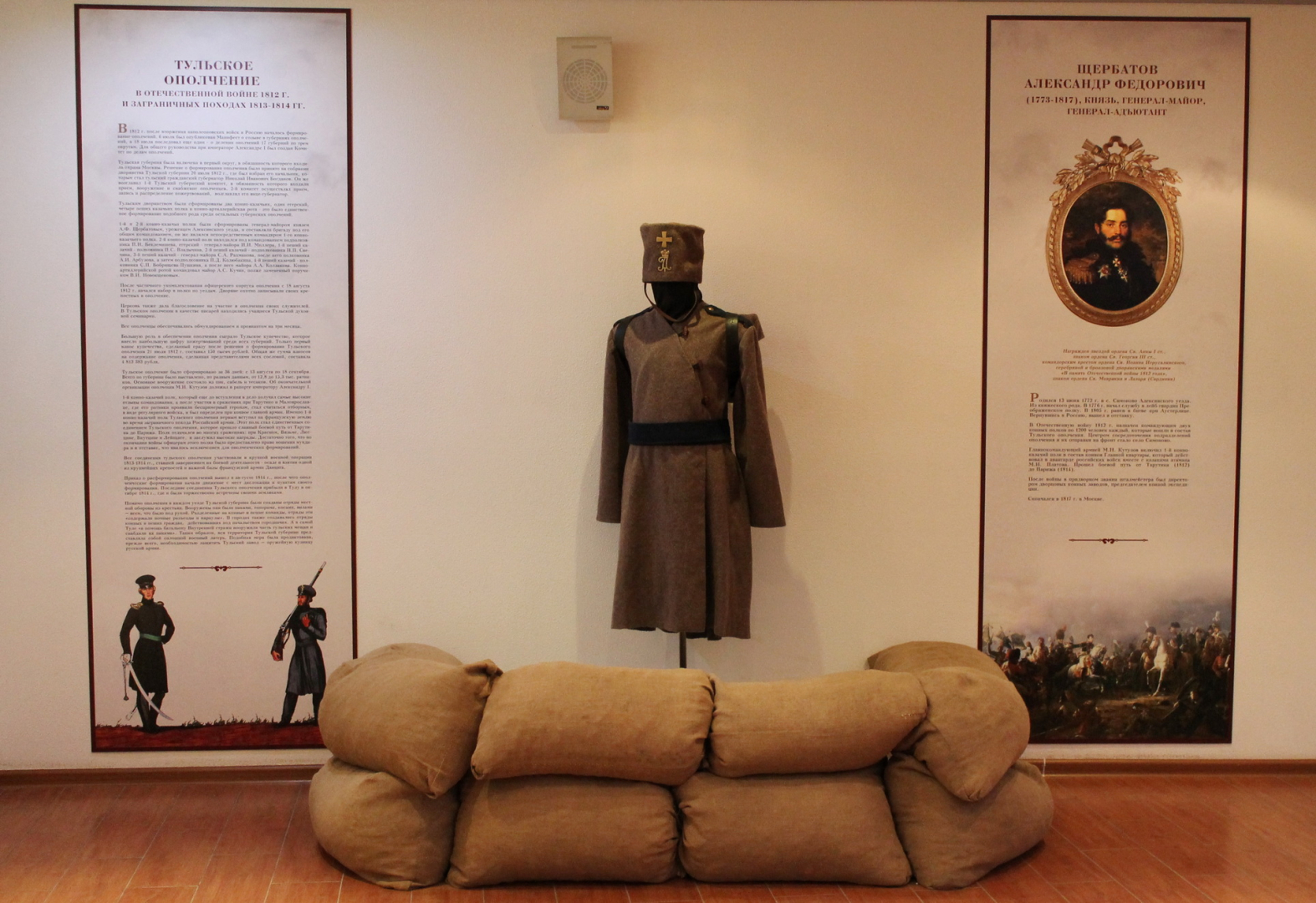 Здесь вы увидите историческую реконструкцию обмундирования и снаряжения ратника 4-го пешего казачьего полка Тульского ополчения.