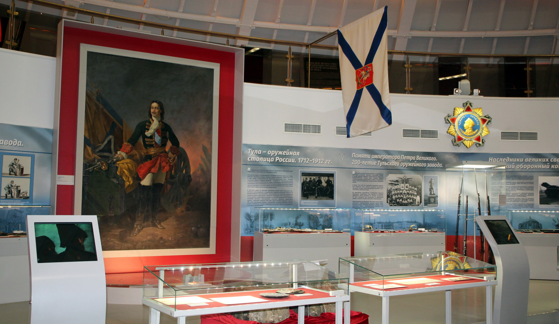 Тульское музейное объединение предоставило для экспонирования памятные медали, связанные с правлением Петра Великого и юбилеями Тульского оружейного завода, гравюры и открытки с видами предприятия дореволюционного времени, уникальный исторический документ – «Положение Тульского оружейного завода от 1782 года», а также портрет императора Петра Первого, написанный в 1759 году Евграфом Петровичем Чемесовым.
