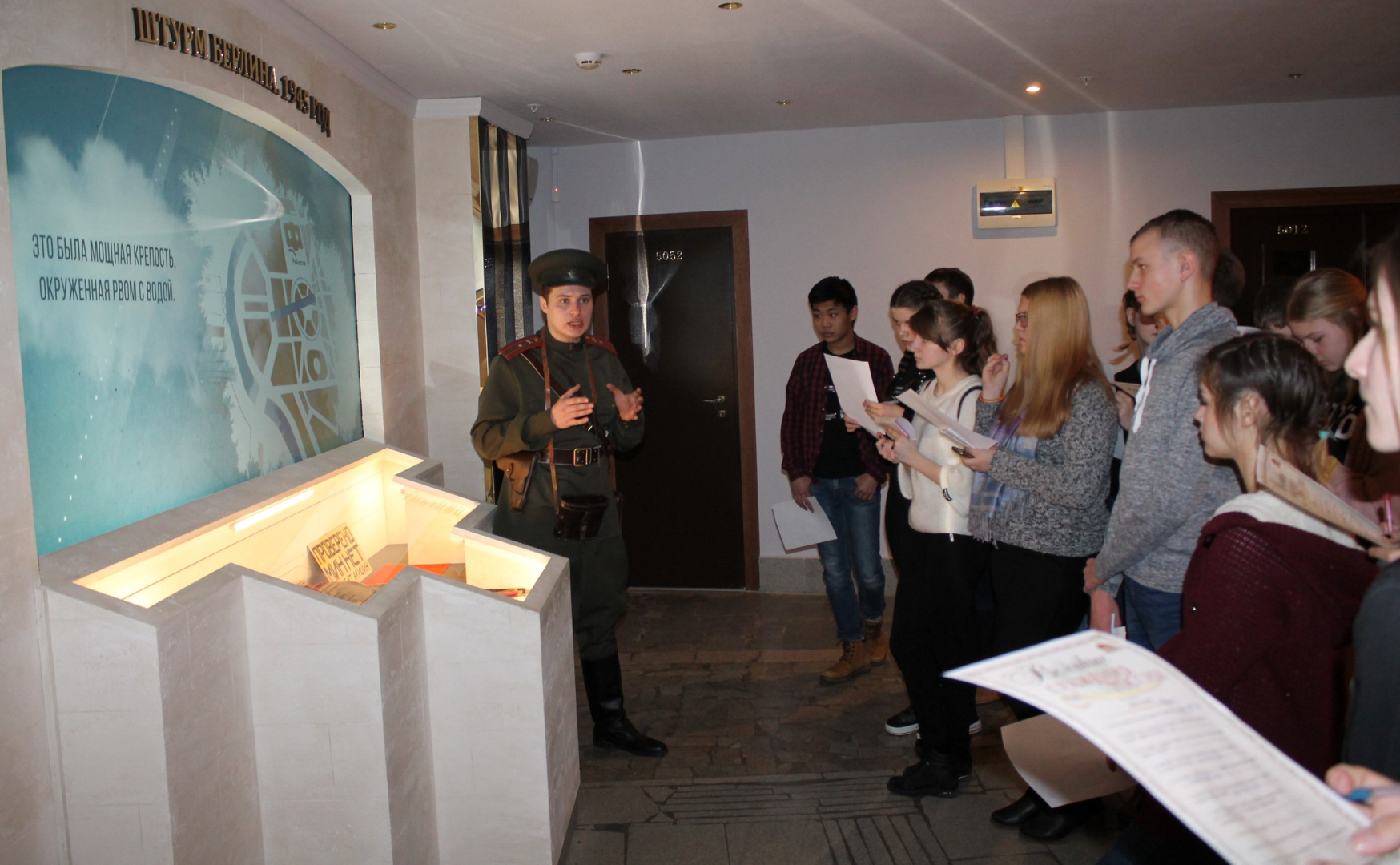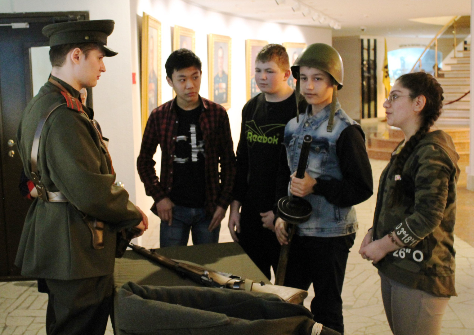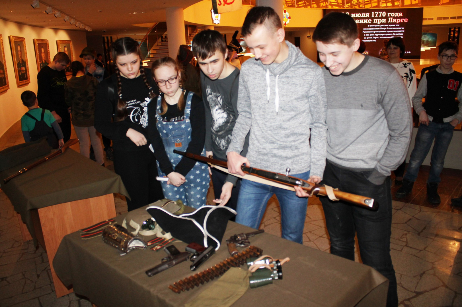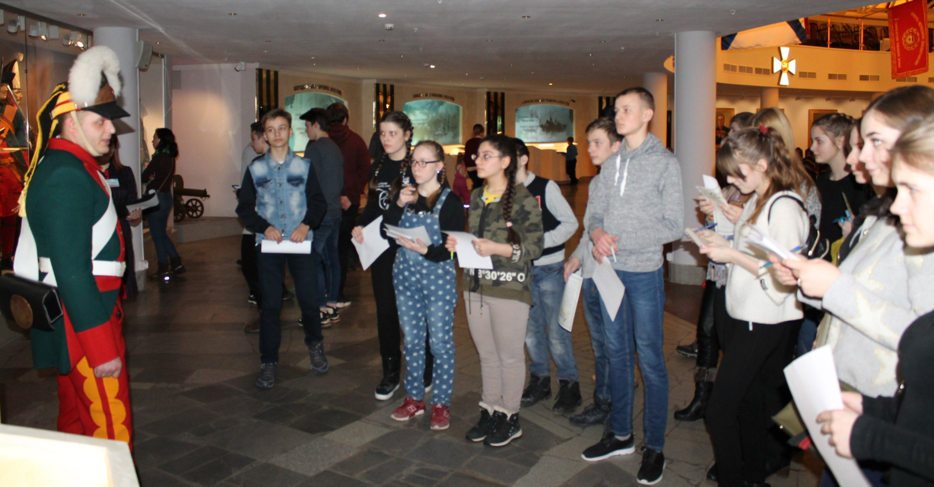 Костюмированная мини-экскурсия с повествованием от лица очевидцев героических битв; викторина; конкурс с историческим военным реквизитом в Зале Славы российского оружия под куполом легендарного «шлема».