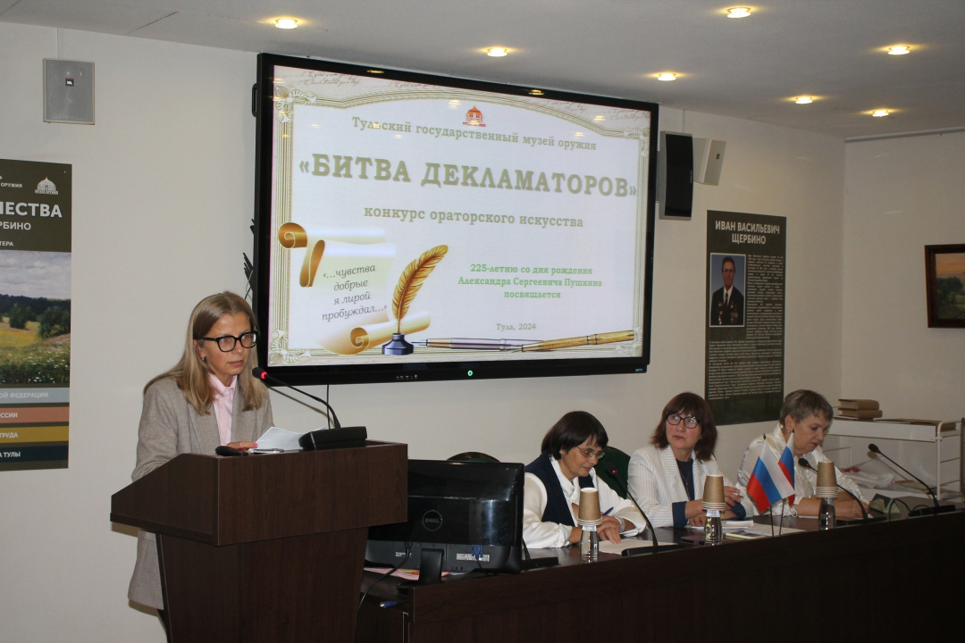 В Тульском государственном музее оружия состоялся конкурс ораторского искусства «Битва декламаторов», посвящённый 225-летию со дня рождения Александра Сергеевича Пушкина – гениального поэта, драматурга, прозаика, литературного критика и теоретика литературы, историка, публициста, журналиста, редактора и издателя.