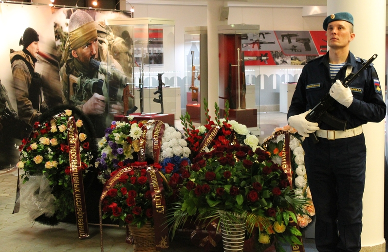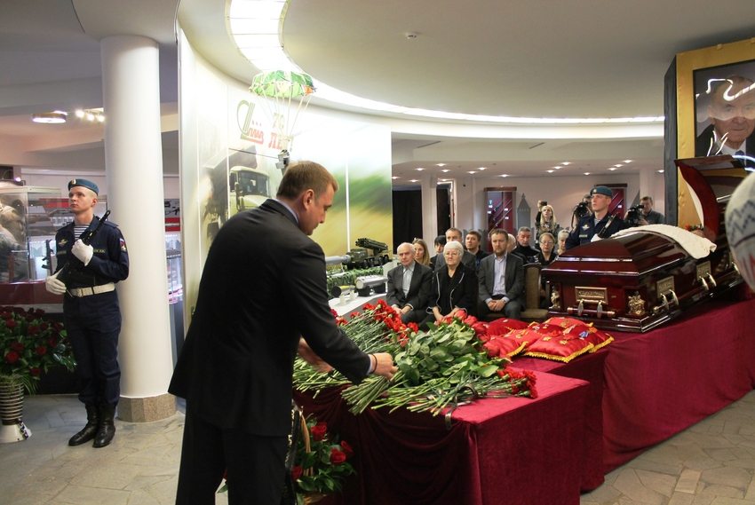 В новом здании музея оружия проходит церемония прощания с Геннадием Алексеевичем Денежкиным, выдающимся конструктором и организатором работ по созданию реактивных систем залпового огня, Героем Социалистического Труда (1989), Лауреатом Ленинской премии (1966) и Государственной премии России (1997), Почетным гражданином Тульской области и города Тулы.