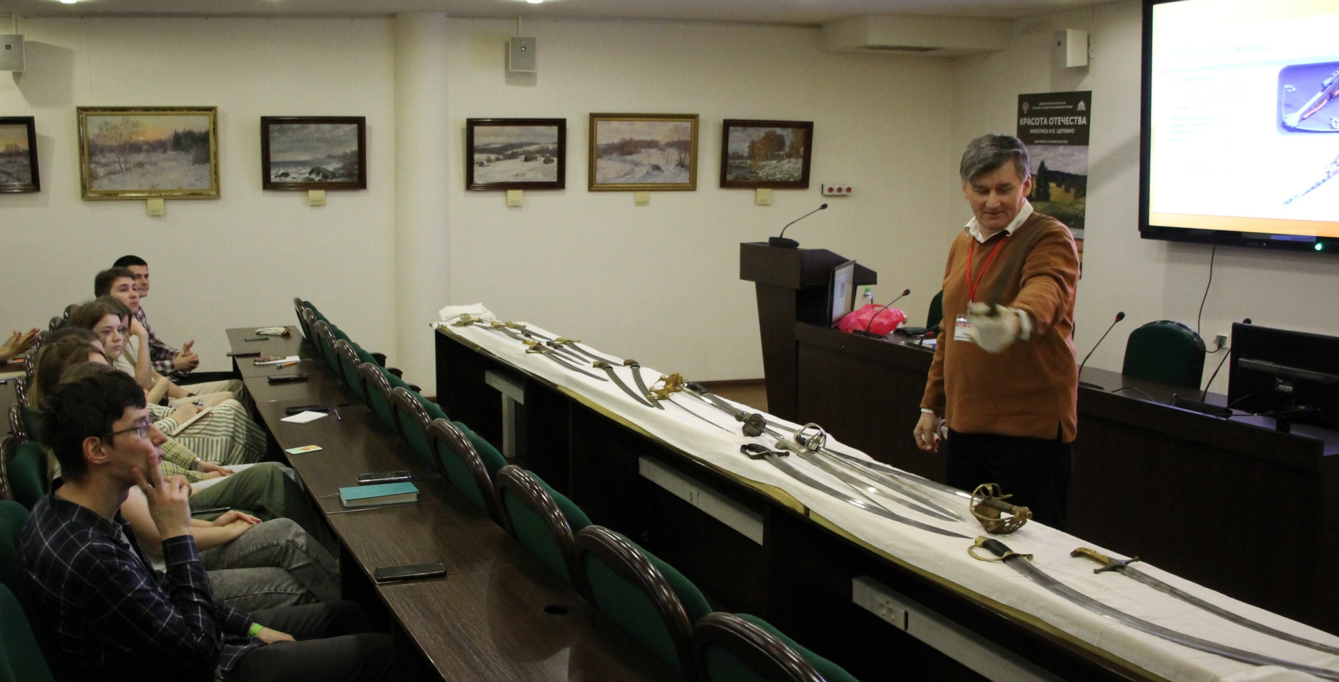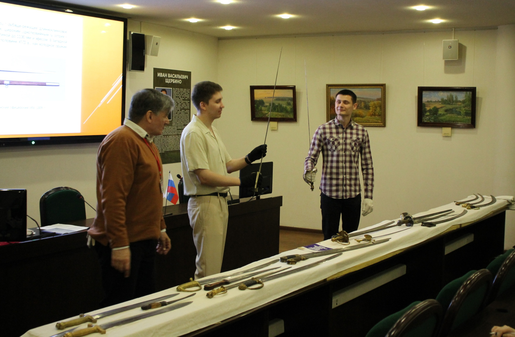 Сегодня тайны и секреты уникальных старинных палашей, шпаг, шашек, сабель и кинжалов раскрыл хранитель музейных предметов А.В. Зубарев.