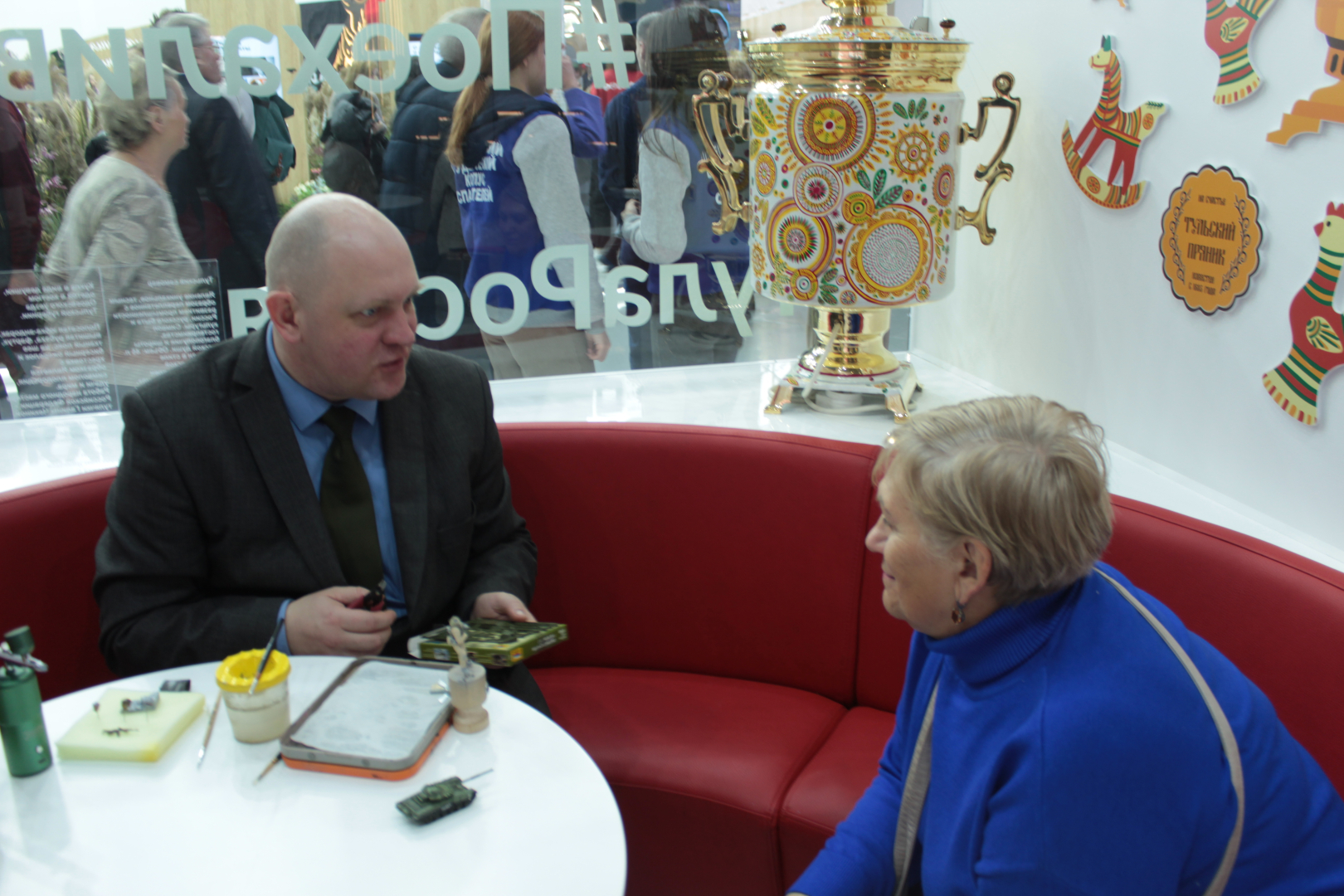 На стенде Тульской области сотрудники музея оружия представили тематические видеоэкскурсии, интерактивные программы, лекции и мастер-классы.