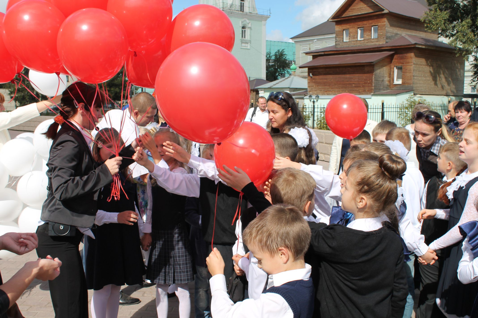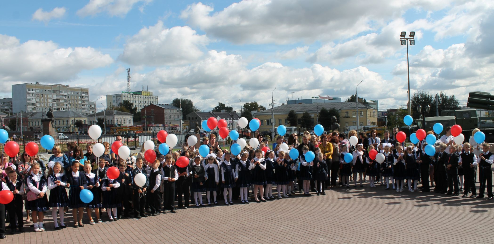 Сотни шаров «триколор» взлетели в небо – чистое, осеннее, а главное – мирное. Акцией «Дети за мирное небо!» открылась праздничная программа музея оружия, посвященная Дню знаний!