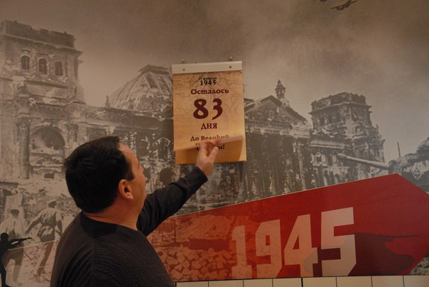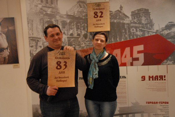 Сегодня первые гости музея Иван Александрович (г.Тула) и Наталья Александровна (Крым) по традиции перелистнули символический календарь «Сто дней до Победы». Каждый вспоминал своих родственников – участников Великой Отечественной войны. Наталья Александровна рассказала о дедушке, который погиб в Берлине от выстрела снайпера 9 мая 1945 года.