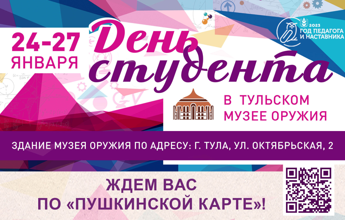 Друзья, отличная новость! В Тульском государственном музее оружия с 24 по 27 января 2023 года – «Неделя студенчества»!