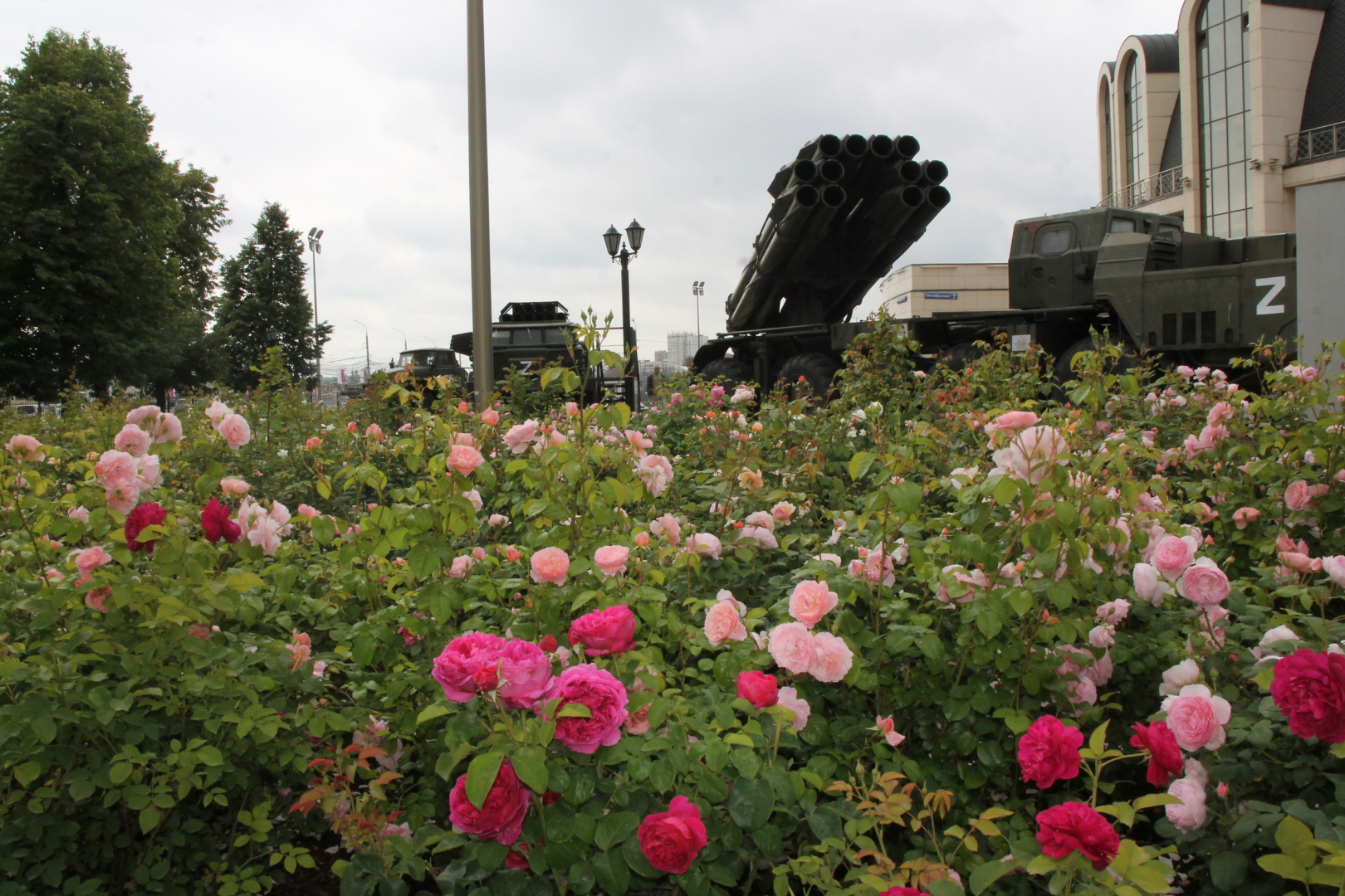Гармония силы и изящества: грозное оружие и техника защищают чудесный мир красоты и духовности, доброты и справедливости! Нежные краски и изысканные ароматы розария у здания-шлема Тульского музея оружия покоряют сердца туляков и гостей музея!
