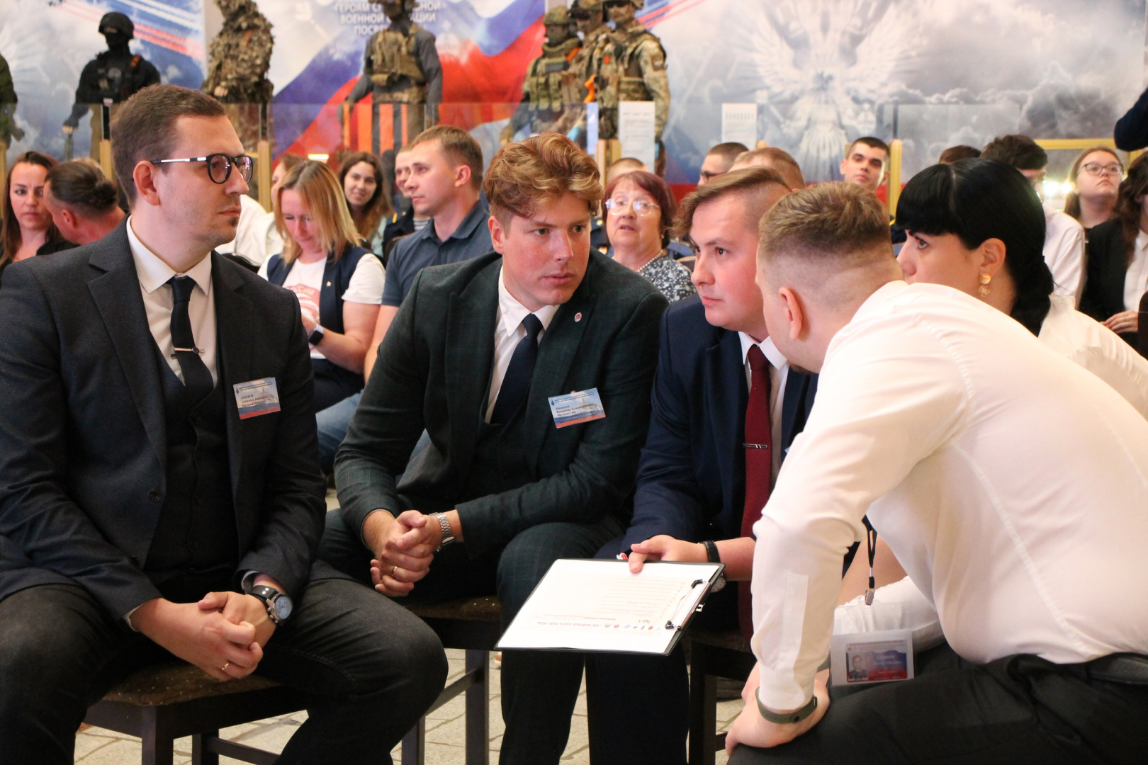 Полноту и достоверность ответов оценивали профессионалы: доктор технических наук, дважды лауреат Государственной премии В.К. Зеленко; начальник отдела Департамента культуры Министерства обороны Российской Федерации, кандидат психологических наук, доцент О.В. Фаллер; директор службы обеспечения деятельности Конструкторского бюро приборостроения им. академика А.Г Шипунова А.В. Морозов; корреспондент Первого канала М.А. Наумова, летчик военно-транспортной авиации А.А. Самкова; участник специальной военной операции, поэт Сергей Лобанов.