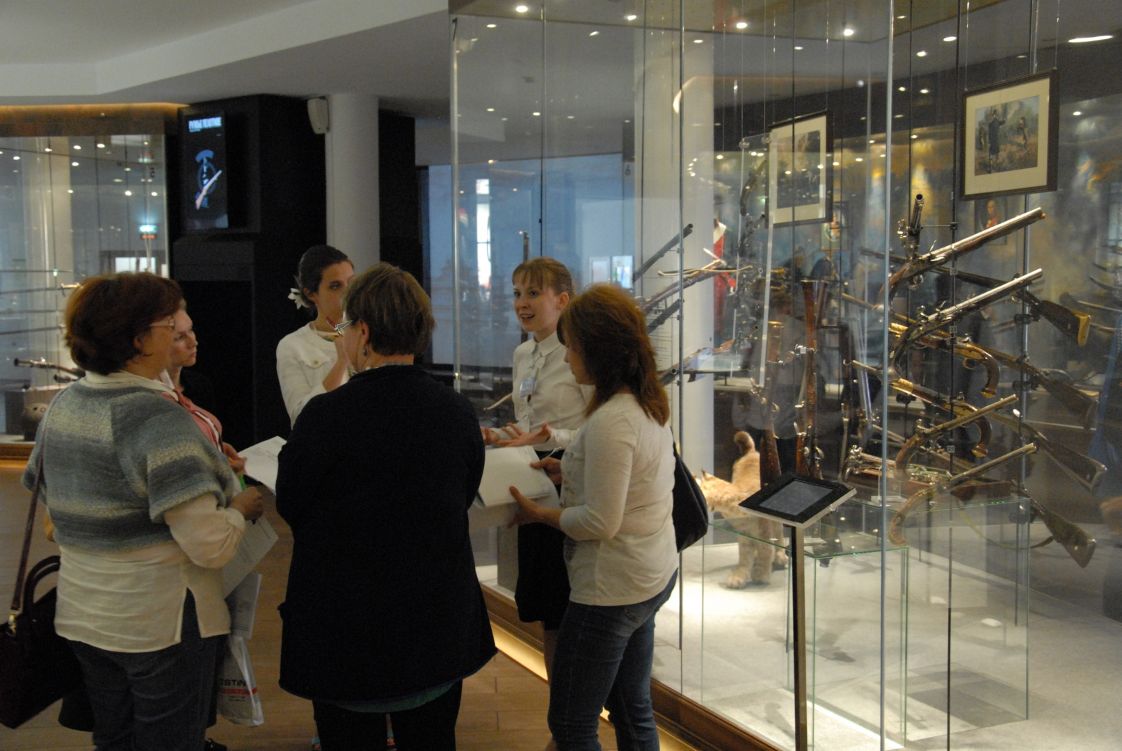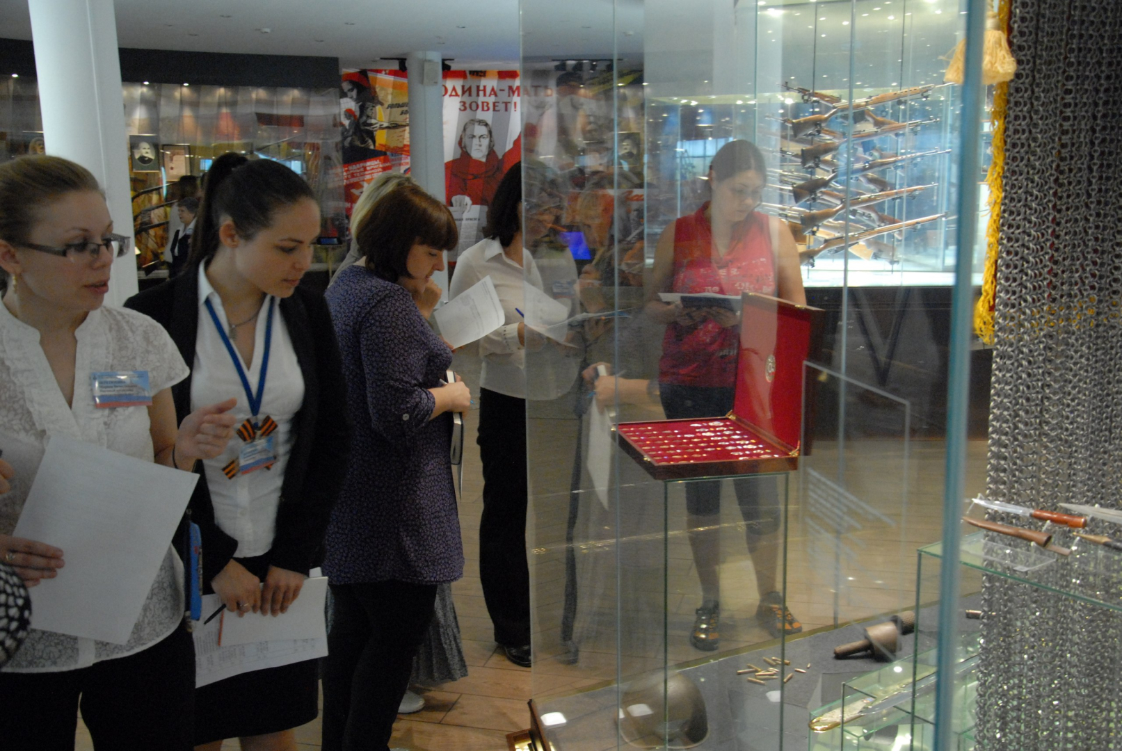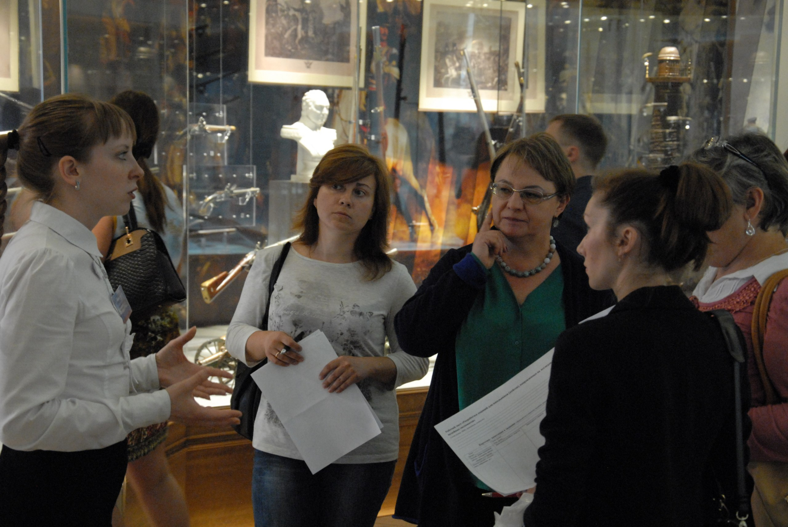 Сегодня, 6 июня, в музее оружия состоялся второй научно-практический семинар «Отрабатываем «предметный метод» для сотрудников федеральных и региональных музеев, а также для учителей учреждений образования. Социальные партнеры музея оружия – ведущие аналитики Московского центра музейного развития М.В. Мацкевич и Е.Б. Медведева предложили алгоритм разработки заданий для школьников, направленных на исследование музейных экспонатов. Полезной и плодотворной была совместная групповая работа участников семинара на новой постоянной экспозиции музея. Многоплановость и богатство материала экспозиции способствовали рождению неожиданных идей по проведению уроков не только истории и литературы, но и музыки, и даже информатики.