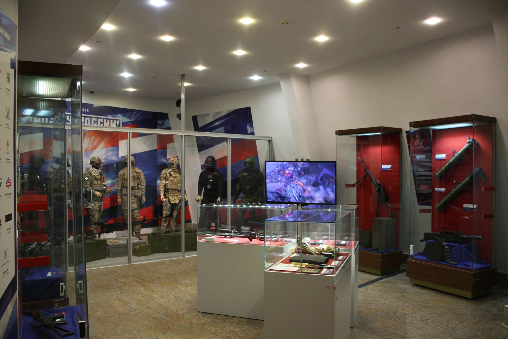 Экспозиция пополнилась более чем 20 новыми экспонатами, среди которых - станковый гранатомет АГС-17, автомат малогабаритный ОЦ-14 «Тисс», крупнокалиберный пулемет «Корд» и элементы снаряжения (от приборов ночного видения до крюка-кошки) военнослужащих и специалистов.
