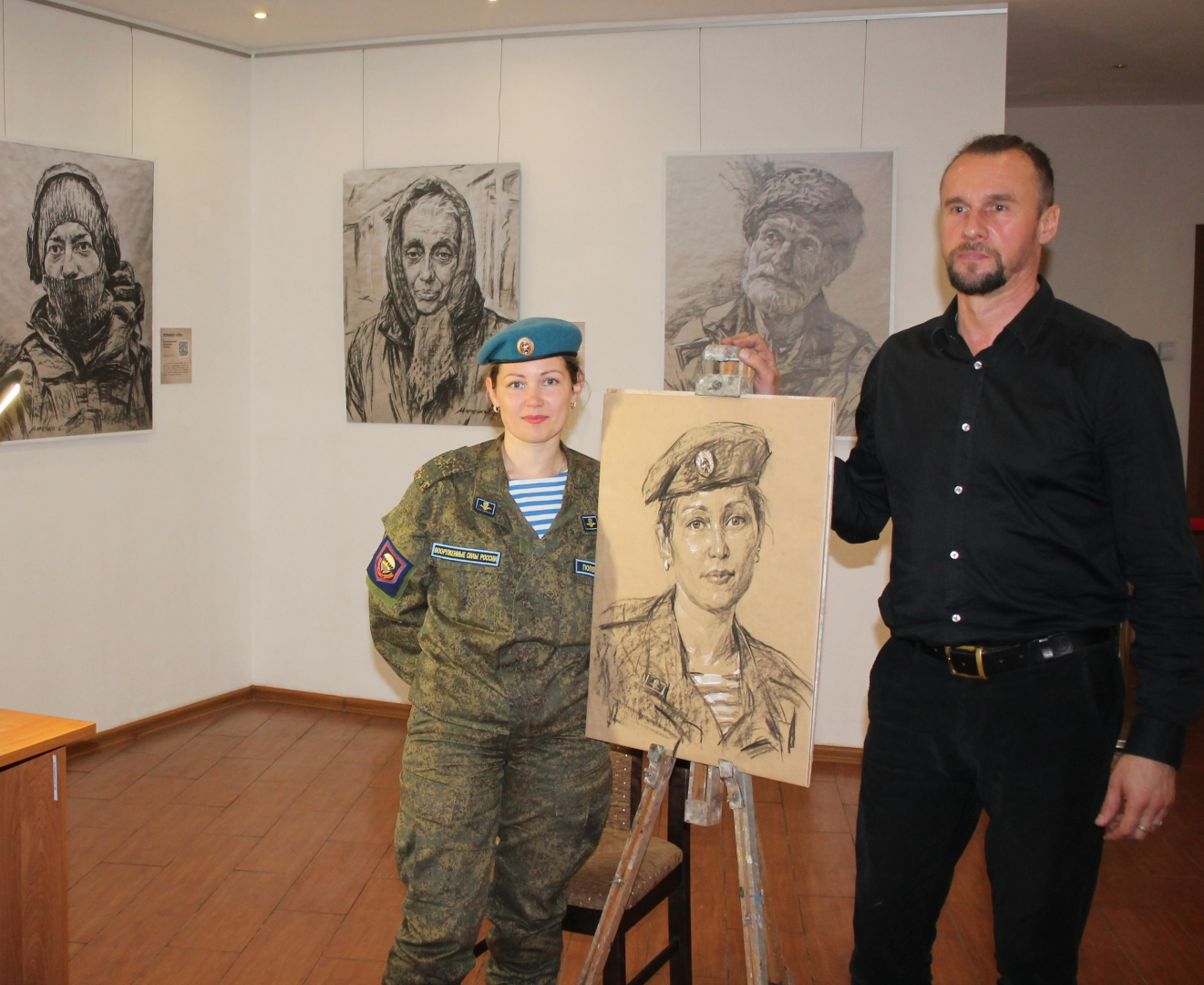 Героиня его нового творения – Ирина, участница СВО из 51 парашютно-десантного полка. Милая молодая женщина в военной форме, с легкой полуулыбкой на лице в течение сорока минут, позировавшая художнику, была восхищена портретом, полученным от автора в подарок.