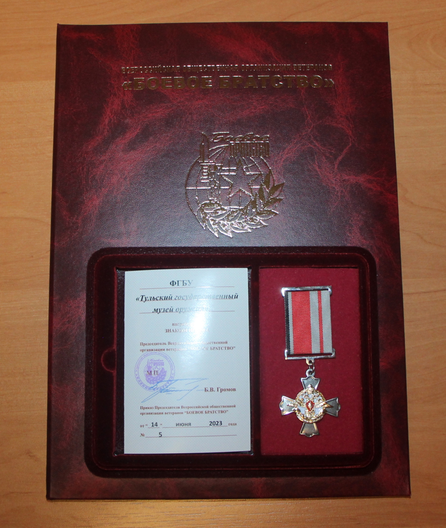 Тульский государственный музей оружия награжден «Знаком Почета» Всероссийской общественной организации «Боевое Братство» за значительный вклад в патриотическое воспитание детей и молодежи. Именно в деле патриотической работы между Тульским государственным музеем оружия и «Боевым Братством» сложились крепкие узы дружбы и социального партнерства. Шесть лет музей оружия является бессменным центром проведения форума «Наследники Великой Победы».