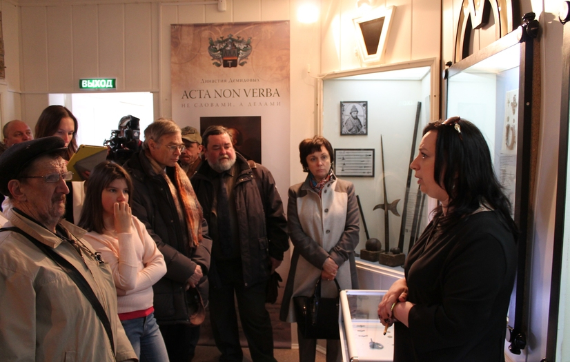 Затем в Тульском государственном музее оружия был проведен круглый стол «Никита Демидов. 360 лет на Тульской земле: начало, расцвет, традиции», участниками которого стали И.Б. Пинк – заместитель директора Тульского государственного музея оружия по науке и экспозиционно-выставочной деятельности, М.А. Розанова – исполнительный директор Международного Демидовского Фонда, И.Н. Юркин – исполнительный секретарь Международного Демидовского Фонда, главный научный сотрудник Института истории естествознания и техники им. С.И. Вавилова РАН, музейные работники, краеведы, педагоги.