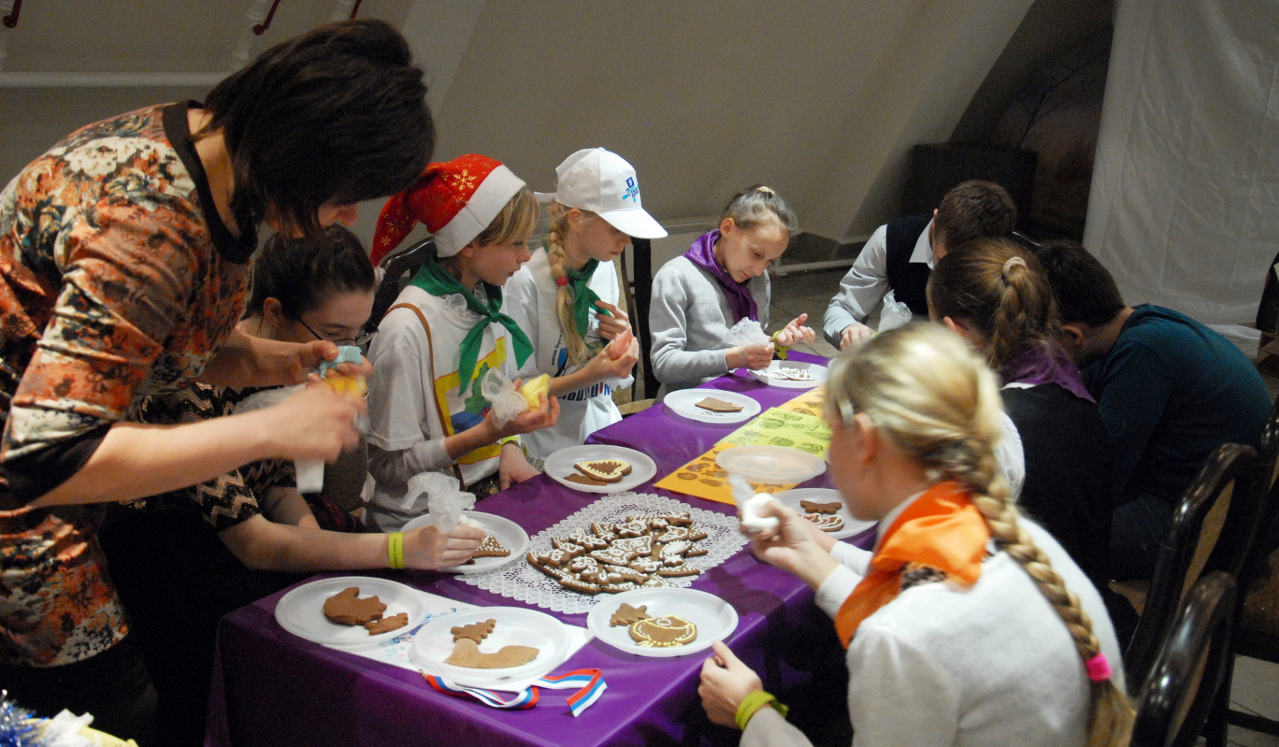 «Новый год по-тульски!» - это яркое и увлекательное представление, праздничные мастер-классы, удивительные встречи! Ребята изготавливали необычные подарки для друзей и близких: оригинальные елочные игрушки из бумаги и мыла, художественные композиции из пластилина и биокерамики, имбирные пряники, расписанные сладкой глазурью; а также осваивали технику аквагрима и учились украшать праздничный стол. На мастер-классе «Виртуальный полет к звезде» летчик-космонавт, Герой России С.В. Залетин раскрыл «юным звездочетам» тайны подготовки космонавтов. Участники праздника получили огромный заряд энергии, позитива и отличного настроения.