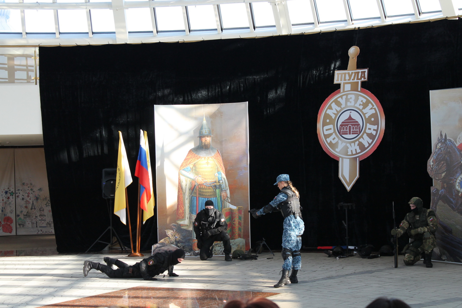 Это увлекательное шоу с элементами каскадерских трюков с холодным и огнестрельным оружием, яркой хореографией и эффектными историческими костюмами. Перед зрителями предстают древнерусские богатыри, солдаты и гардемарины эпохи Петра Великого, воины Отечественной войны 1812 года, советские солдаты и офицеры Великой Отечественной войны. Завершается выступление фееричным представлением войск специального назначения современной Российской армии. Путешествие в героическую историю России никого не оставило равнодушным! Режиссер и руководитель театра А.Е. Стеценко ответил на многочисленные вопросы гостей, выдал презентационные альбомы и пригласил на ближайшие выступления театра: 26 марта, 23 апреля и 8 мая 2016 г.