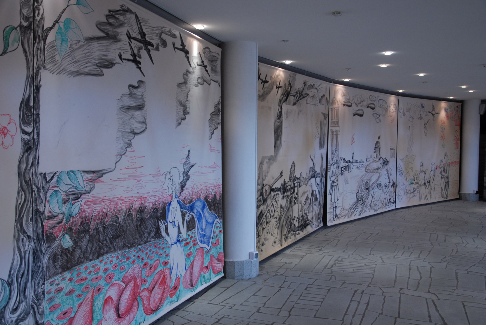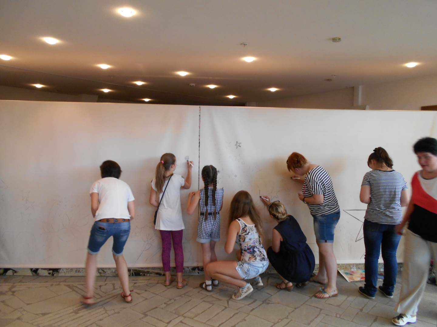 В интерактивной акции музея «Поклонимся великим тем годам!», приуроченной к 70-летию Парада Победы на Красной площади, с увлечением участвовали ребята из школы №23 и лицея №3 г. Тулы. Юные художники создали удивительно яркие, наполненные глубоким смыслом графические картины, органично вписавшиеся в пространство выставки «Не смолкнет слава тех великих лет». В их работах представлена вся история войны: от ее трагического начала - до победного завершения. Своеобразным подарком участникам акции и посетителям музея стал моноспектакль «Скажи всю правду о войне» - авторский проект старшего научного сотрудника музея-усадьбы «Ясная поляна» Ю.Н.Савинова, созданный на основе воспоминаний ветеранов-участников сражения под Мценском в октябре 1941 года.