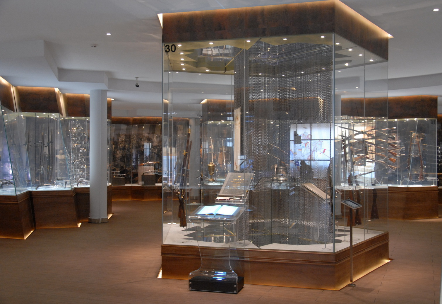 С 24 февраля в здании-шлеме новая постоянная экспозиция музея оружия «История стрелкового и холодного оружия с XIV века до современности» (первый и второй экспозиционные уровни) ждет своих посетителей.
