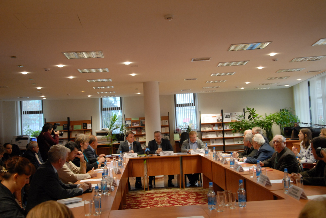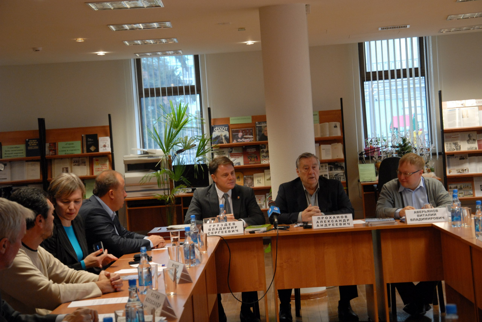 Начал дискуссию Александр Андреевич Проханов - председатель Изборского клуба, писатель, журналист и политический деятель.