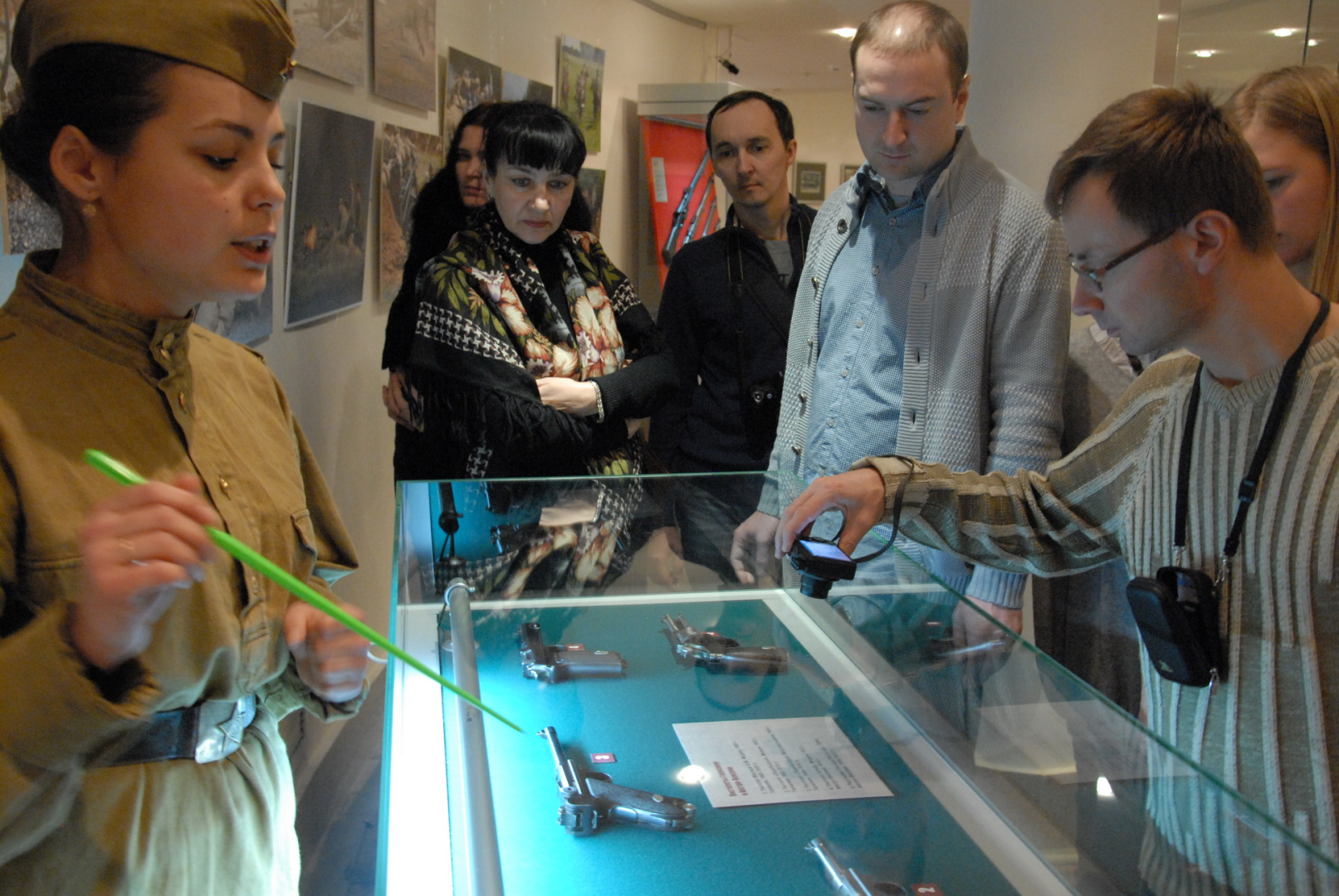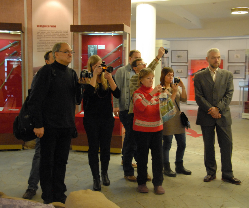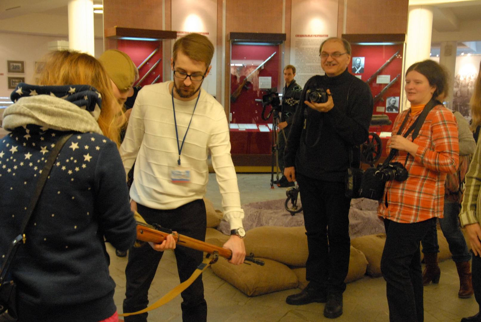 В музеях фотографировать любят многие, но сегодняшние гости музея оружия отдавались съемке с азартом и огромным интересом, ведь это были журналисты – участники пресс-тура «Героические страницы тульской земли», организованного министерством культуры и туризма Тульской области совместно с Центром развития культуры и туризма. Журналисты «вооруженные» фото- и видеотехникой «атаковали» музей и занимали «высоту за высотой»: постреляли в тире, своими руками изготовили оружие на мастер-классе по художественной керамике, ознакомились с экспонатами на выставках. Завершающим «залпом» стала миниатюра «Они сражались за Родину», исполненная театральным коллективом музея оружия «Несокрушимые». Впечатления от посещения города-героя и его музеев гости отразят на страницах своих печатных и электронных изданий – «Московская правда», «Эхо Москвы», «Отдохни», «Авиация и туризм», «Турист», «Аналитический банковский журнал» и многих других.
